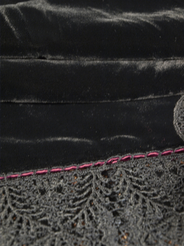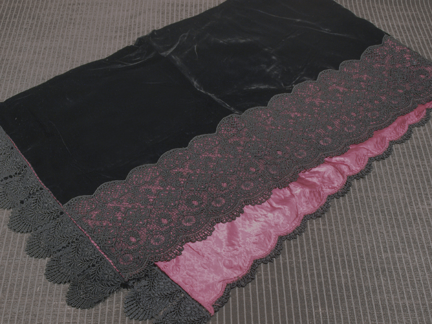 黒色無地のベルベットのショールです。ドイツのベルベットのブランド「PEDENCO」社の製品です。 ユーズド品で、画像のとおり、たたみじわやこまかな起毛の乱れなどはありますが、クリーニングなどのお手入れできれいになりそうです。目につくしみやよごれ、褪色などのダメージはなく、きれいな状態です。 |