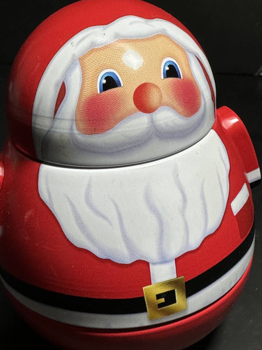 サイズ 全長:約13㎝ カラー:赤色他 デザイン性とビンテージ感満載のサンタクロース ダルマ サンタ キャンディーケース 鉄製で、ご利用やコレクションにおすすめの一品です |