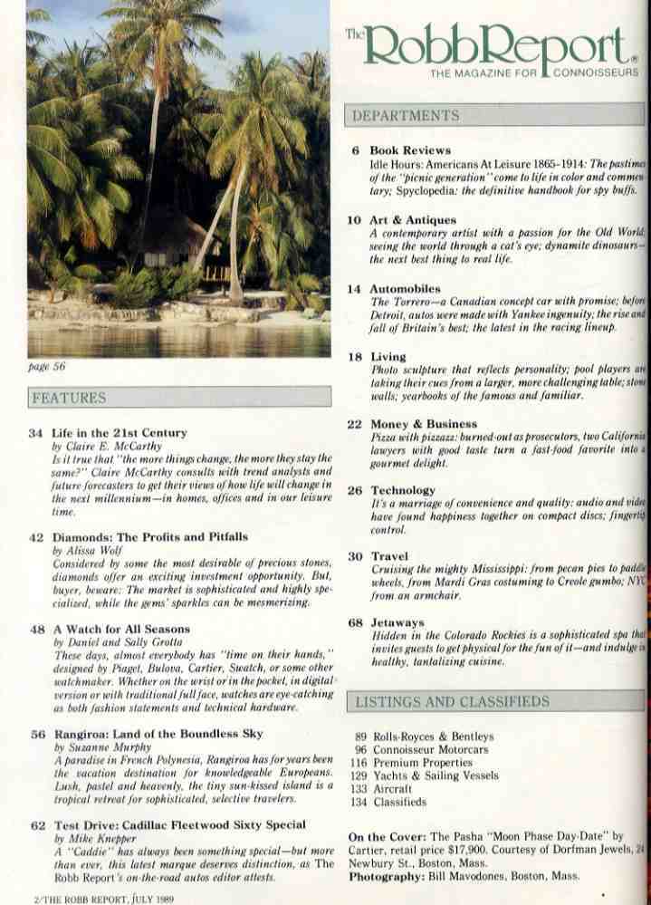 書名/記事: 89.7 The Robb Report/時を刻む以上の腕時計、ダイヤモンドの利益と危険性、トレロ(Torrero)、21世紀の生活、ランギロア島、キャディラックフリートウッド シックスティスペシャル、...