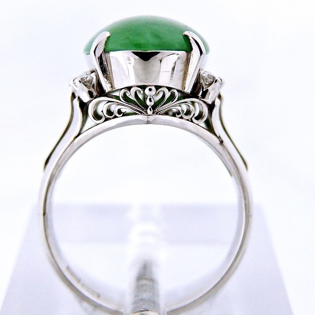 | * Pt900 * ヒスイ大きさ(約):約14.7mmx11.0mm * ダイヤモンド:0.25ct * モチーフの大きさ:約縦14.7mmx幅13.5mm * リングの立ち上がり:約9.3mm * アームの幅:約2.4mm~4.0mm * サイズ:11.5号 * 重さ:6.7g (RJ ∞) 0808 10004719