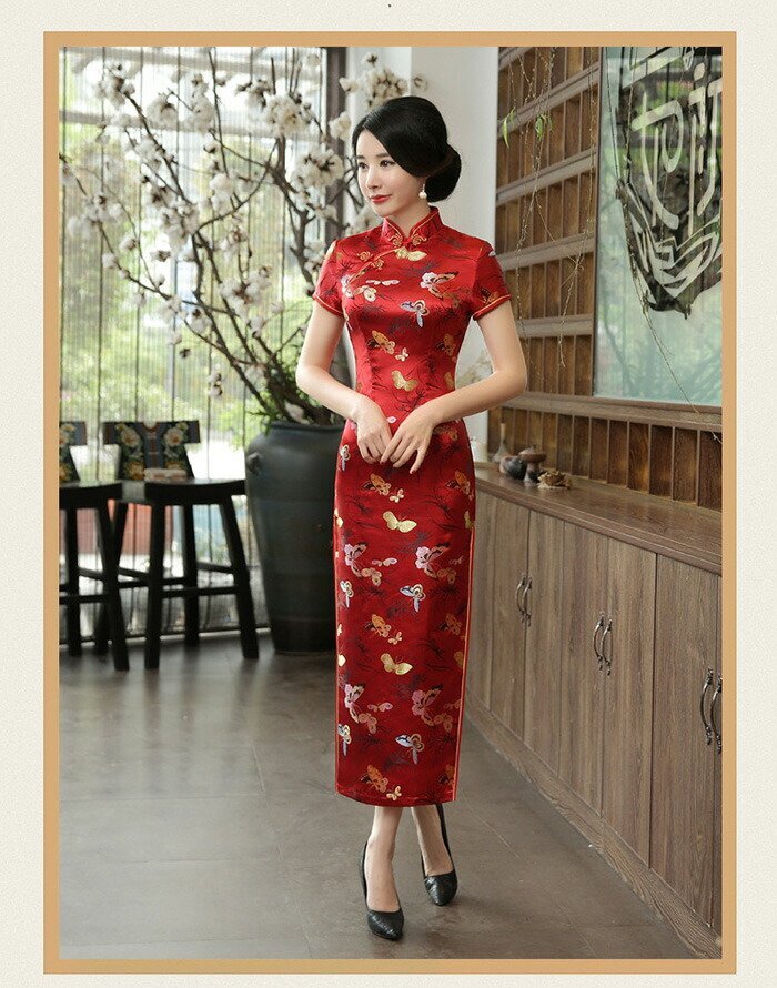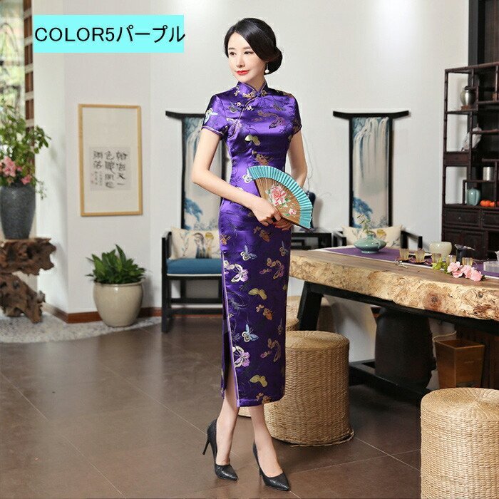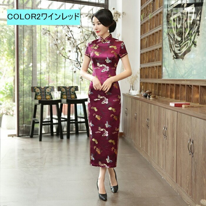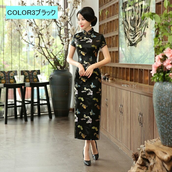 チャイナドレス ロング セクシー チャイナドレス 大きいサイズ 花柄 ドレス ロング丈 ☆6色/S~3XLサイズ選択/1点 [浏览原始页面]