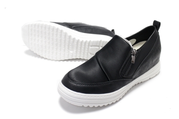 +2cmヒールアップカジュアルスニーカーです。ふんわりクッションインソールの下に+2cm程のインヒール設計。踵の疲れ、底冷え対策、脚長効果と3つの効果をもたらします。サイドにファスナーとゴムを採用し脱ぎ履きを簡単に♪カップインソール式で内部を清潔に保ちます。それだけでなく!もっちりふわふわインソールがくせになるほど快適歩行♪パ