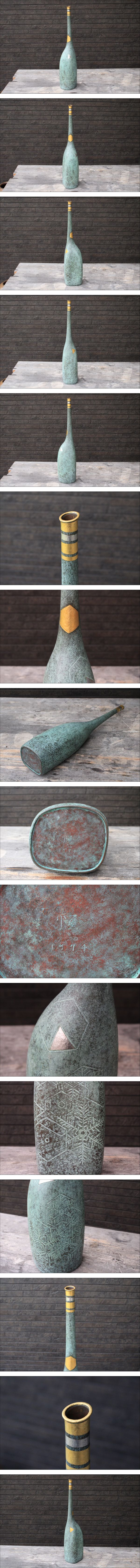 □■大型h59cm!ブロンズオブジェ 青銅鶴首花器 金銀彩結晶地紋 1974 作家刻印在り インテリアに■□ [浏览原始页面]