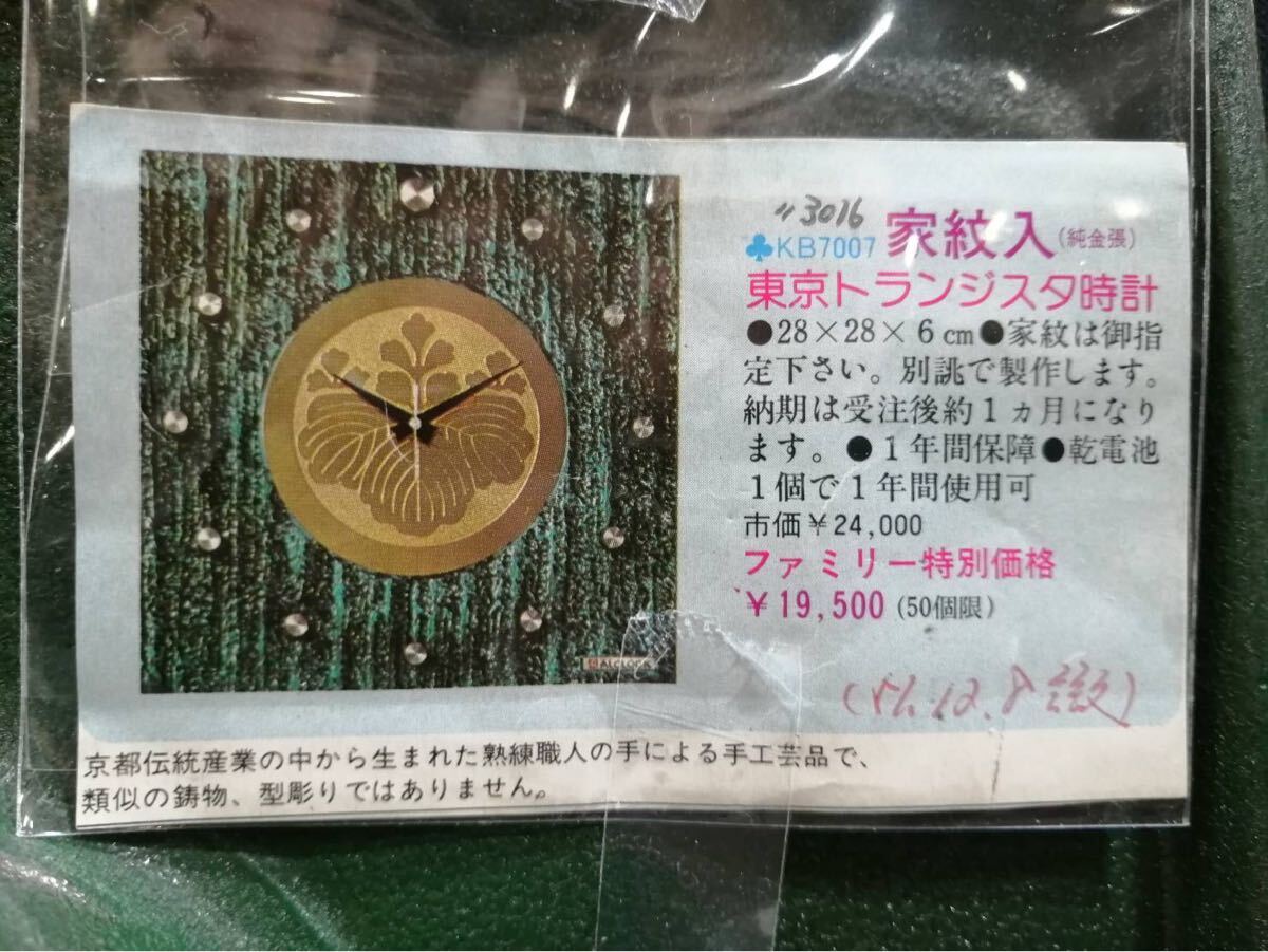 ③ HOKUA ALCLOCK 家紋入 (純金張) 東京トランジスタ時計 KB7007 サイズ 28×28×6cm 置き時計 あ
