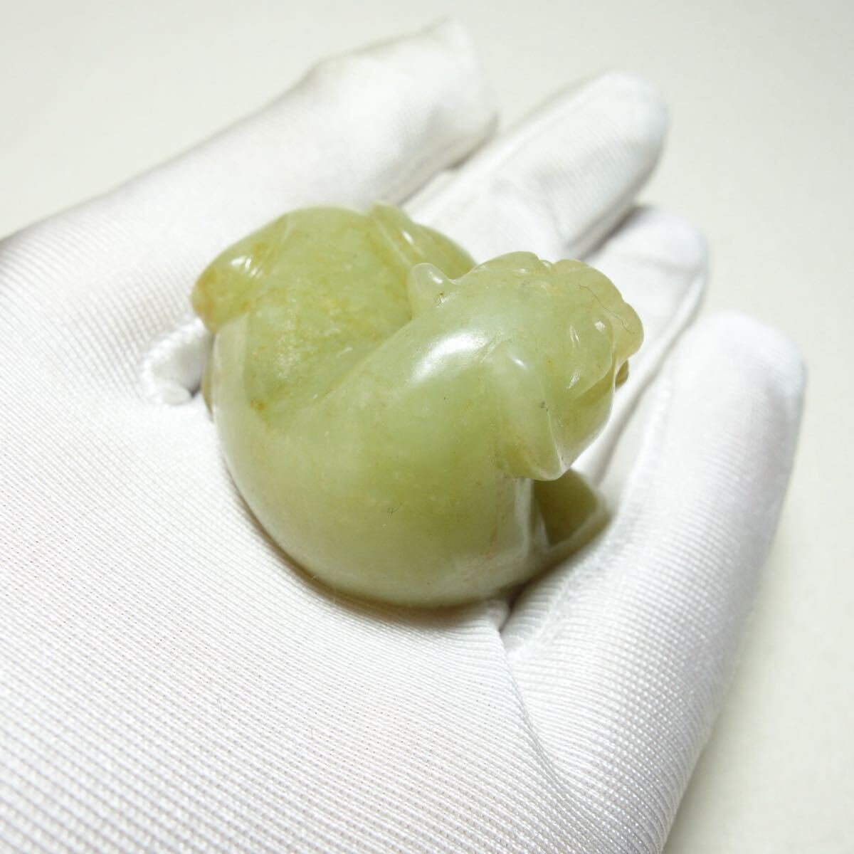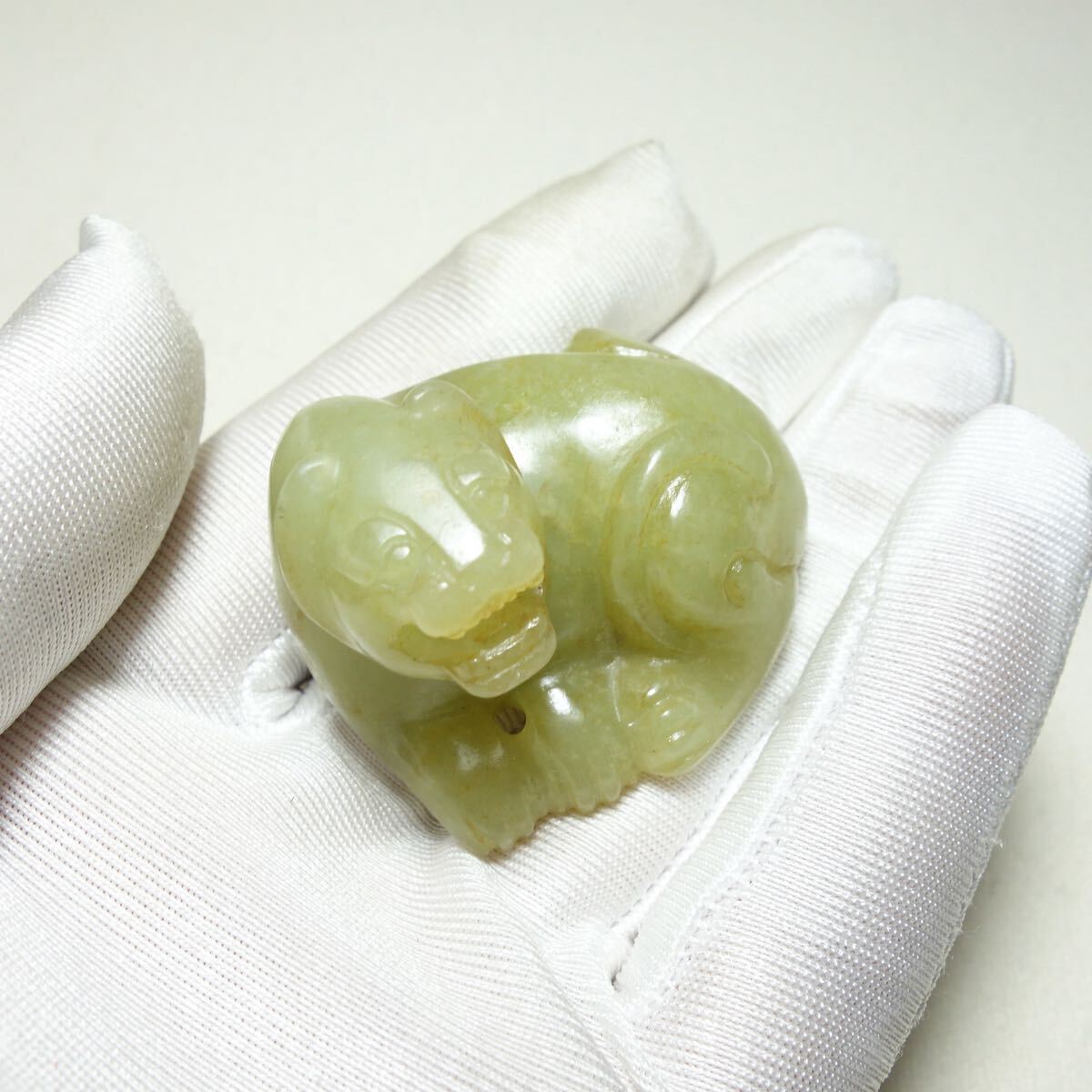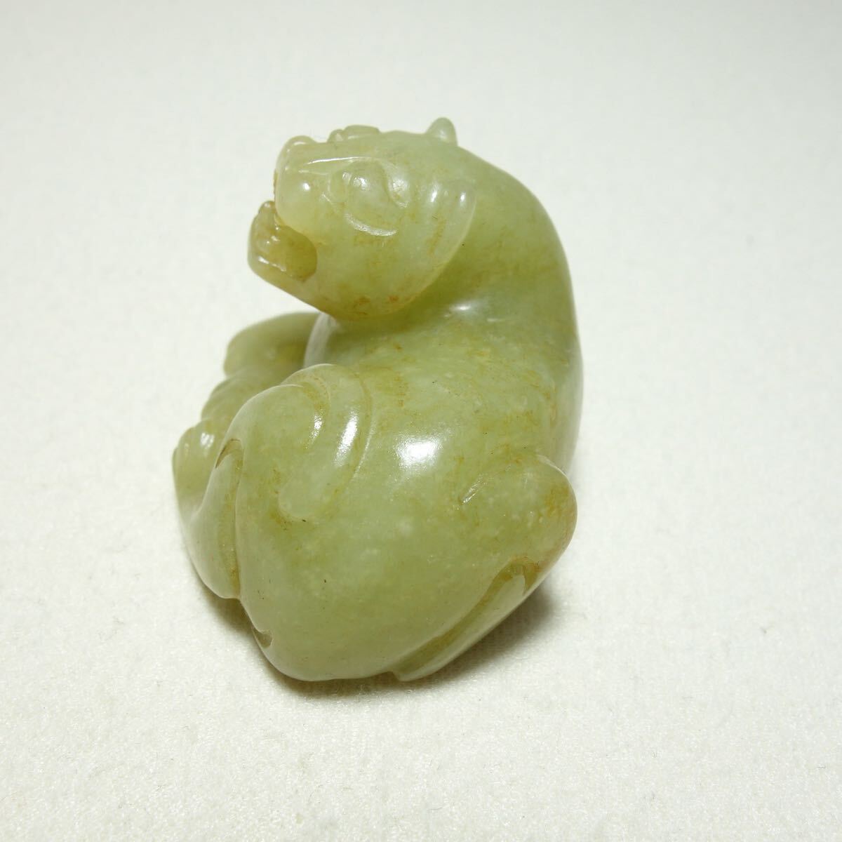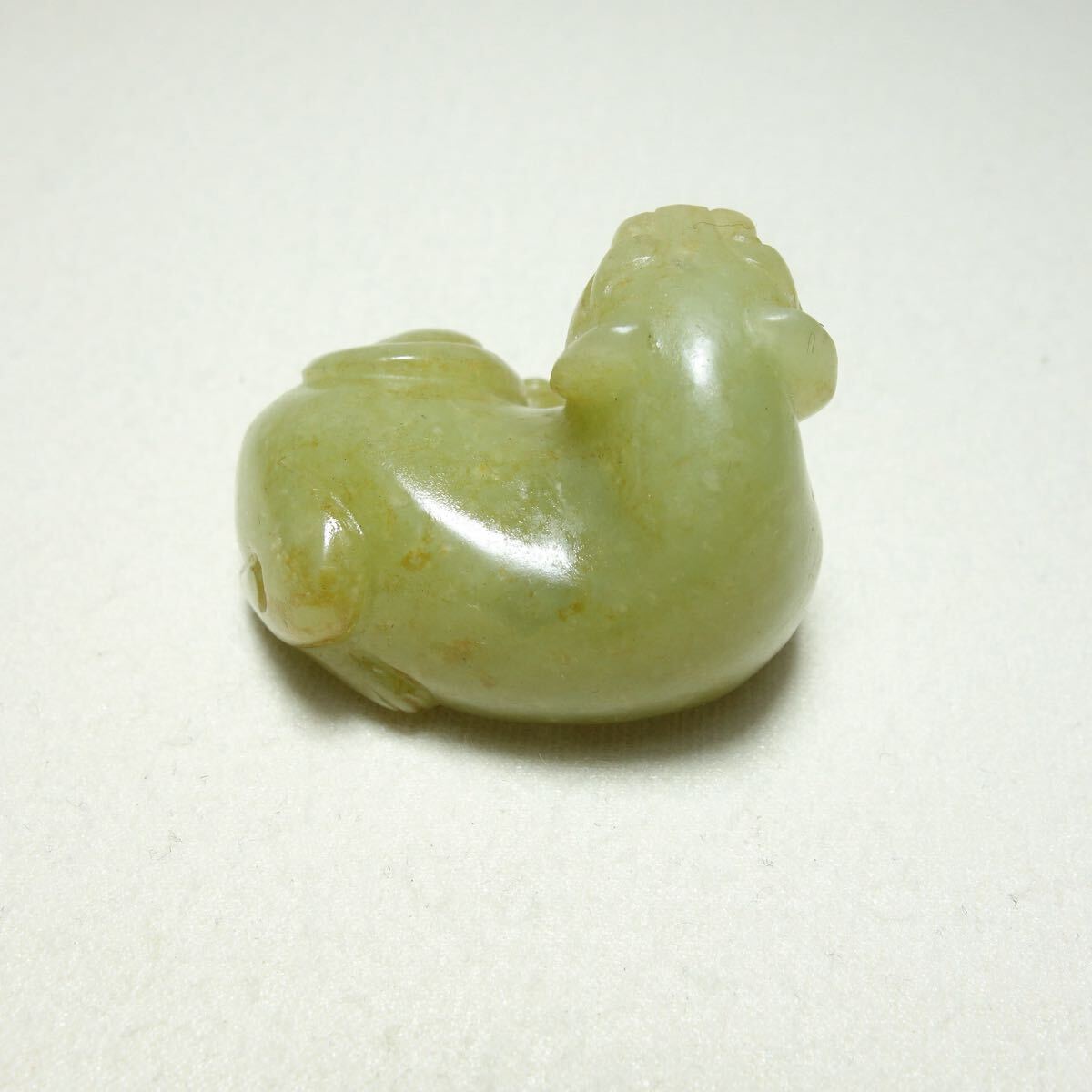 宋代の和田玉で作られた虎形の把件です。力強い姿が丁寧に彫り込まれており、当時の造形美と温かみのある玉質がよく感じられる逸品です。古玉特有の滑らかな手触りと落ち着いた光沢があり、手に収まるサイズ感で鑑賞用としてもお守り感覚としてもお使いいただけます。サイズは約42×35×28mm、総重量は約48gです。古美術や和田玉がお好きな方、コレクションをお探しの方にもおすすめです。写真をご確認のうえ、ご検討いただければ幸いです。出品番号:C1A110。| 出价者 | 信用 | 价格 | 时间 |