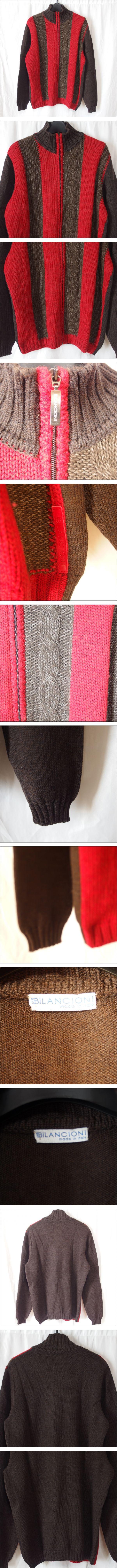 BILANCIONI◆ビランチオーニ メンズ ジップアップ カーディガン(レッド×ブラウン)サイズ40◆USED | |||