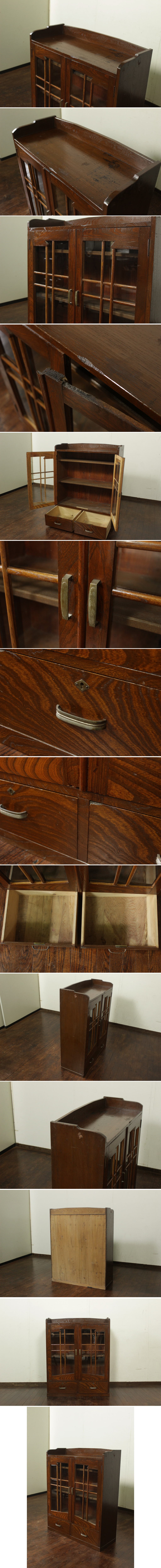 | 商品紹介 | 古い観音開きの木製収納棚です。 無垢材ならではのしっかりとした造りと、経年による味わい深い木肌が魅力の一品。 昭和期ならではの素朴で温かみのある佇まいが、空間にやさしく馴染みます。 前面は観音開きのガラス扉仕様。 さらに下部には引出しが二杯付いており、 カトラリーや小物類の収納にも便利な実用性の高い構造です。 食器棚としてはもちろん、本棚や飾り棚、コレクションケースとしてもお使いいただけます。 古民家や和モダン空間、店舗什器としても雰囲気良くご活用いただけます。 |