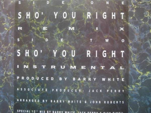 | A1 | Sho' You Right Remix Remix Barry White, Jack Perry, Rick O'Neil (2) | 8:01 |