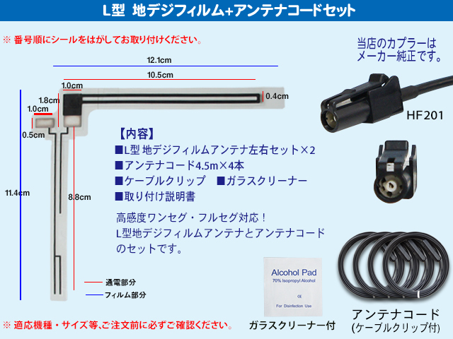 | HF-201 アンテナコード4本 L型フィルムアンテナ4枚 セット カロッツェリア 楽ナビ サイバーナビ EVナビ |