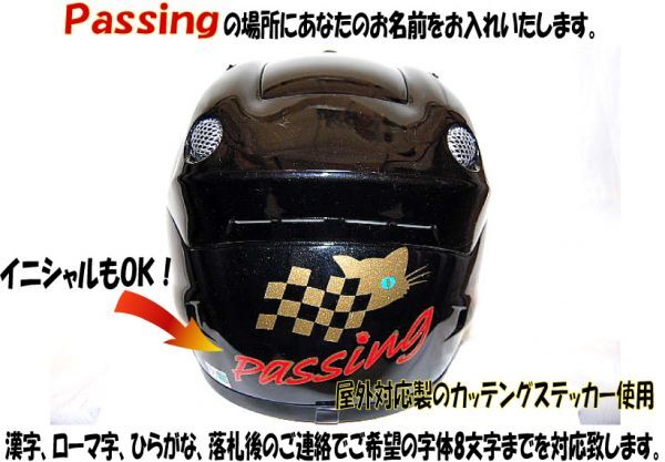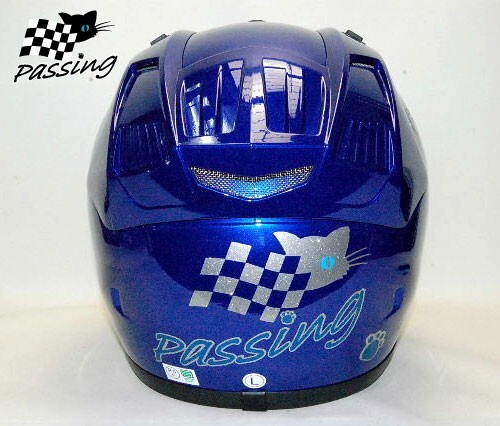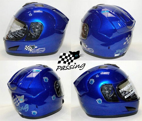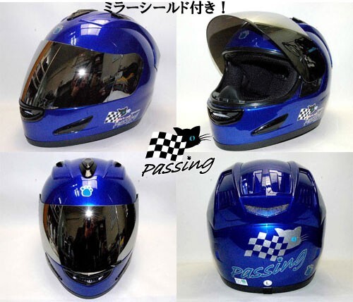 黒猫キャラクターブルーアイちゃんのパッシング・フルフェイスヘルメットです。 ■サイズは Mサイズです。 M57~58㎝、Lサイズ59~60㎝、XLサイズ61~62㎝がございますので変更も可能です。 【調整スポンジもお付けいたします。】 当店のオリジナルステッカーもプレゼント! ご希望でPassingの文字の部分をご希望のネームに変更出来ます。 【8文字まででご連絡をお願いいたします。】色替えも可能 キラキラのメタリック素材・屋外対応のステッカーで猫ちゃんとにゃんこ手形を上から剥がれにくい様にクリアーでコーティングもしてあります。 ■あご紐はワンタッチ式 ■内装は、取り外し可能で洗えます。 ■通気性を考えたベンチレーション機能付き ■SG規格適合品(全排気量対応) シールドはUVカットの透明が付いております。 ★別売り2800円プラスで下記のシールドのお色も追加できますのでご連絡くださいませ。 【送料の方にプラスで追加可能です。】 ①ライトスモークシールド ②ミラーレインボーシールド ③ミラーシルバーシールド ④スモークシールド