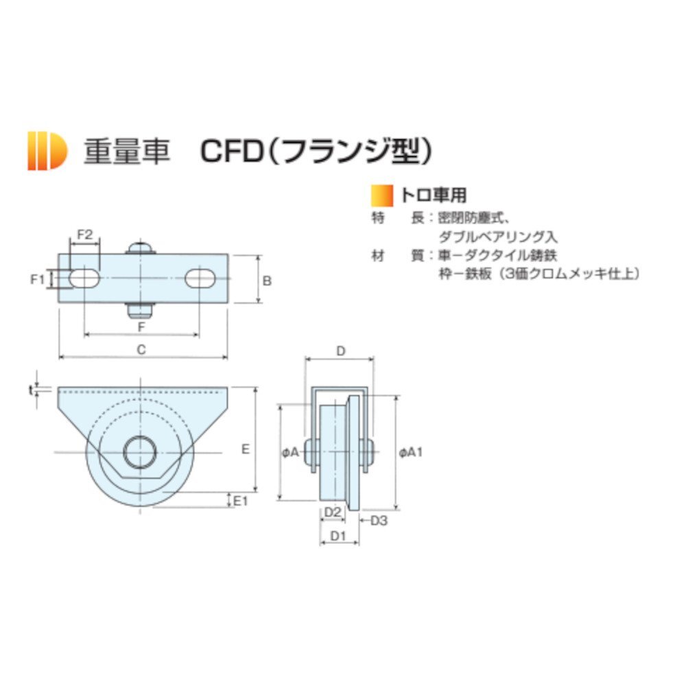 | タツタ製 TSB 重量車 戸車 フランジ型 トロッコ用 CFD-75 | |