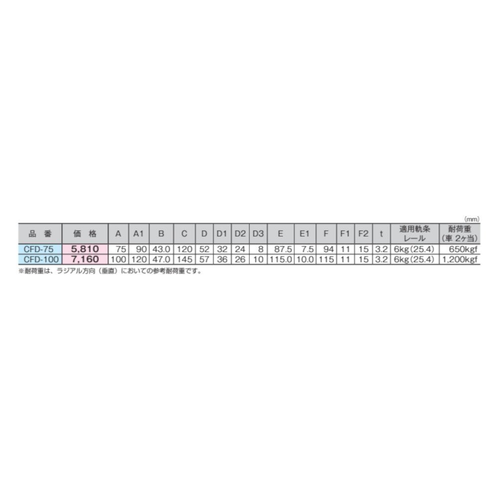 | 商品説明 | 株式会社タツタ製の重量用戸車の新品です。 TSBブランド品です。 ■詳細 サイズ : CFD-75 車輪サイズ : 75mm 溝型 : フランジ型 個数 : 1個セット 取付け寸法一覧は添付画像で確認下さい 【特徴】 鉄道車両のように、車輪の縁には脱線を防ぐための出っ張りが設けられており、これをフランジと呼んでいます。1個使うだけでは脱線しますが、鉄道レールのようにオフセットで左右で2個使うならば脱線を防ぎます。 |