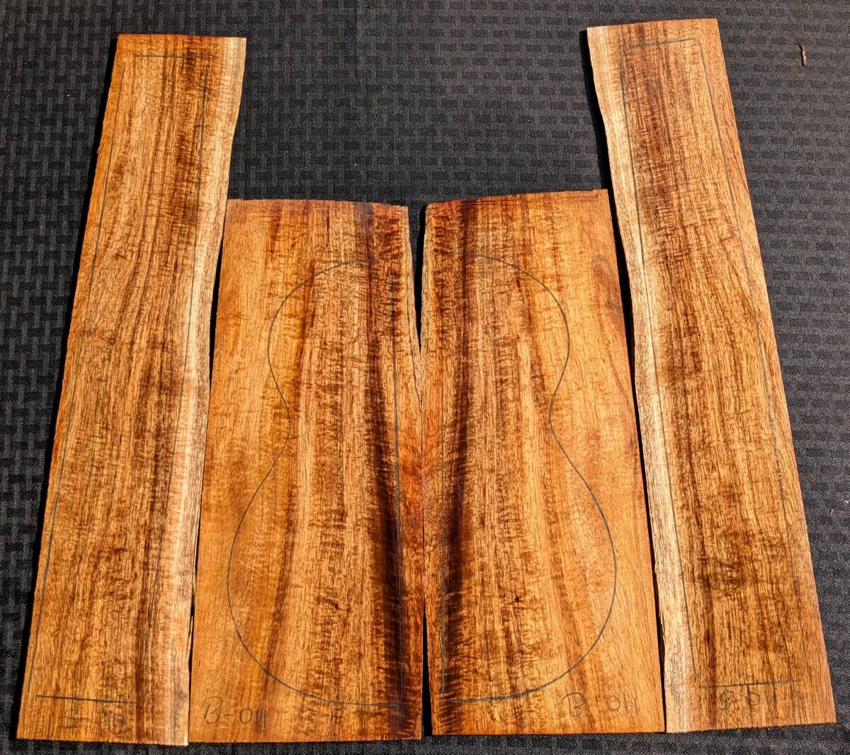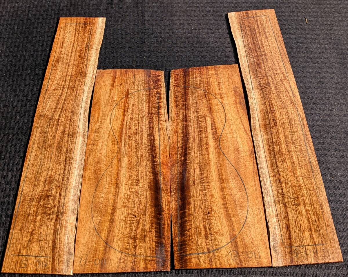 ◆目玉商品◆ TR-BS-011・超特価テナーウクレレ材・裏サイド4枚セット・送無・希少3A ハワイアンコア材・ハワイ島直送・Hawaiian Koa TENOR SET