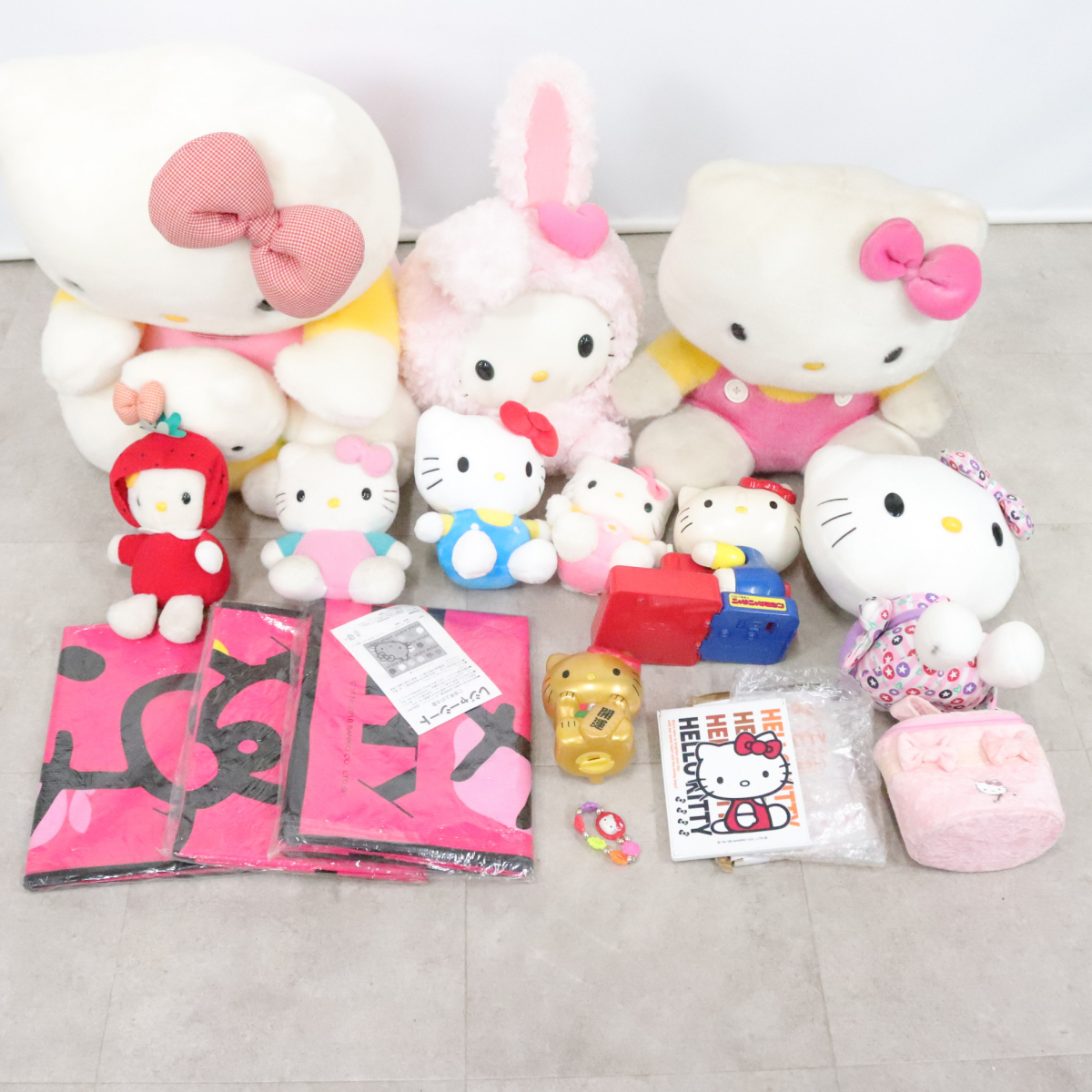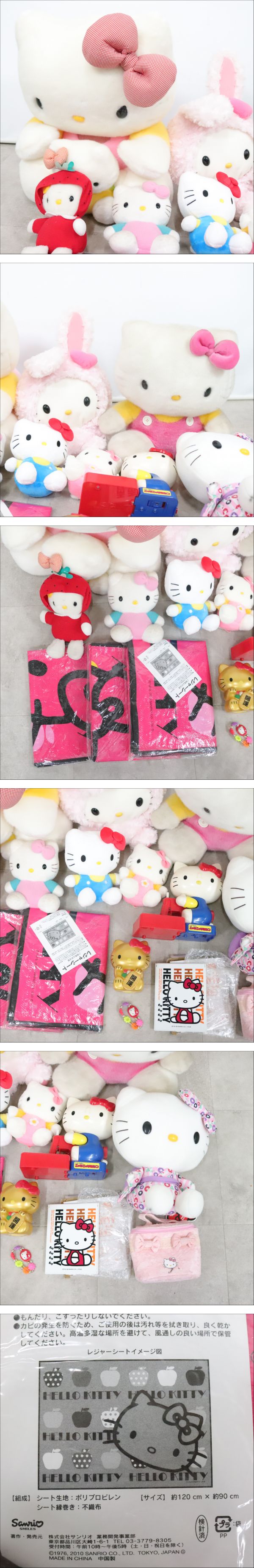 | 商品説明 | ★最後までお読みいただき、ご理解の上でのご入札をよろしくお願いいたします。 【FU005】 キティちゃんまとめ サンリオ ぬいぐるみ メイクポーチ 貯金箱 レジャーシート ミラー TAKARA 日本製 等 【商品状態】 ひとつずつ検品・梱包は行っておりません。 まとめ品の中にジャンク品を含む可能性があります、ご了承ください。 多数商品がある場合、傷や汚れを写真に載せきれない可能性もございます。 あらかじめご理解・ご了承の上入札をお願いいたします。 また、細かくクリーニングしている訳ではありませんので 状態を極度に気にされる方、神経質な方は入札をお控えください。 ■写真に写るもののみの販売となります。 写真にないものは付属いたしません。 画像をご確認の上、商品の状態に納得して頂いた方のみ入札をお願いいたします。 【取引ナビの対応日時】 ■平日9:00-17:00となります。※土日祝日は休業 【発送方法】 発送は佐川急便よりお送りいたします。 原則ご入金後、発送まで3日~7日お時間を頂いております。落札商品の量によって発送までのお時間が前後してしまう可能性があります。商品をお急ぎの方はご注意ください。 ※発送元地域が異なる商品の同梱はできません。 また土日祝日はの取引全般をお休みしておりますので発送/連絡はできません。いつ頃発送するのか等の催促はおやめください。 ※沖縄・離島の方は【中継料】が発生し送料が高額になります為、佐川着払いとなります。 ※中継料が発生した場合、追加で中継料分の不足送料を請求させて頂きます。必ずご自身のお住まいをご確認頂いてから入金をお願い致します。 【直接引き取り】 引き取り場所は東京都八王子市になります。 詳しいご案内場所は落札後、取引ナビにてご連絡いたします。 受付時間:平日9-17時 直接引き取りをご希望される場合は、以下の通りお手続きをお願いいたします。 お取引の際は、「単品取引」を選択してください。 送料の選択では、必ず「0円(無料)」をご指定ください。 【重要】 システムの都合上、複数ご購入の場合でも「まとめて取引」は選択されないようお願い申し上げます。 ご理解とご協力のほど、よろしくお願いいたします。 ■手順 ① 取引情報の入力 ② yahoo!かんたん決済で支払うをクリック ③ 配送方法を直接引き取り0円を選択し決済を行ってください。 ④ 取引メッセージに 直接引き取り希望と、希望日、希望時間帯をお知らせください。 後程、ご案内の通知をいたします。 【注意事項】 ■発送連絡と同時に評価も入れております。評価不要の方はご落札時にメッセージでお知らせください。 ■商品到着後、破損があった場合は配送業者へ一度ご連絡をお願い致します。 ■発送方法の変更はお受けできません、また送料に納得がいかないままの入札はご遠慮ください。 ■商品到着後7日以上経ってからの返品・返金は対応出来ません。品物が到着次第すぐに商品の状態をご確認ください。 ★他にも沢山の商品を出品しております。 ご興味のある方は、他の商品も是非ご覧下さい。