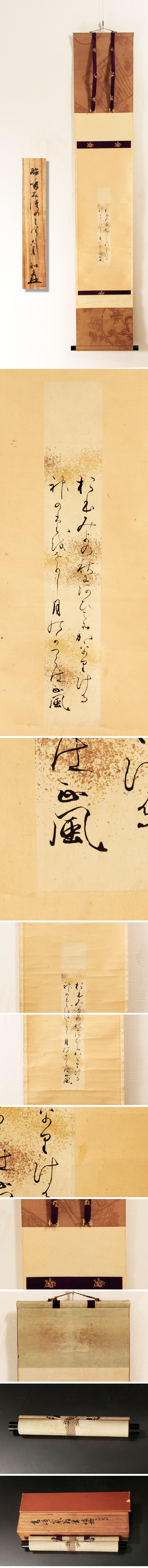 厳かな雰囲気の非常に出来の良い書です。 ★商品は高崎正風筆、堀江知彦識の作品である事を保証致します。 ※掛軸の同梱発送について※ 掛軸とお茶碗などの茶道具との同梱は、破損の危険性が非常に高いため、基本的に承っておりません。予めご了承下さいますようお願い申し上げます。掛軸同士やその他形状が近い商品に関しては同梱可能な場合もございますので、その際は当店よりお知らせ致します。 |