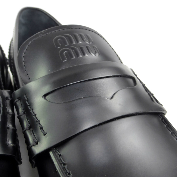 | ミュウミュウ(MIUMIU) カーフレザー コインローファー 靴 シューズ #38 1/2 ブラック(新品) |