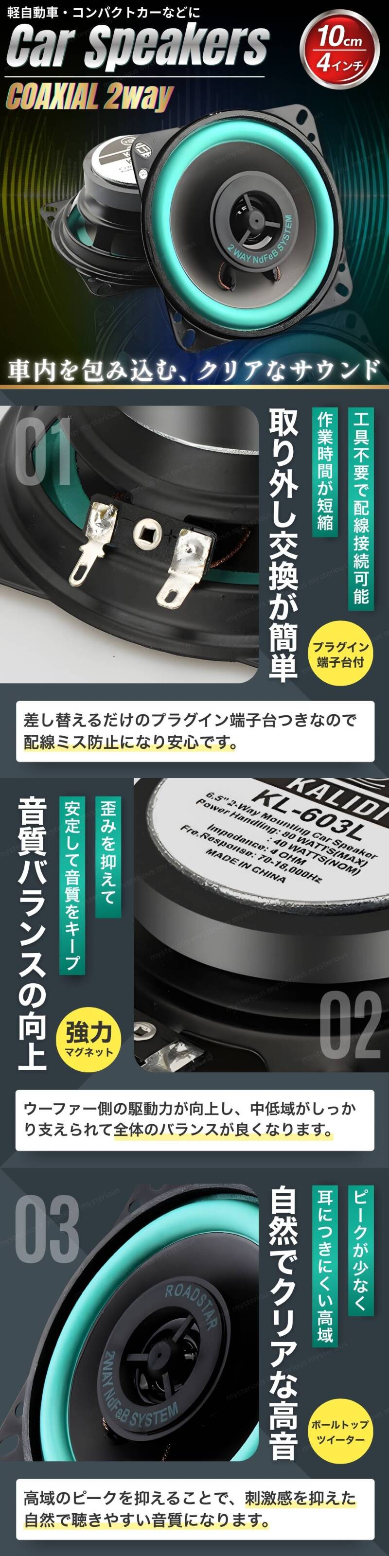| 10cm 2way コアキシャル カースピーカー|2個セット | ||||||||||||||||||||