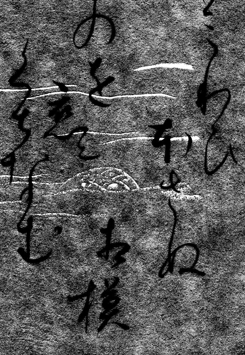 原本自筆上部には、「舟船(しゅうせん)の中に夜、琵琶を弾く者を聞く」《舟の中から夜、琵琶を奏でているのが聞こえてきた。》白楽天の元和十年(815年)江州での作。琵琶行という有名な漢詩です。