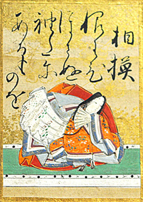 備考・女流歌人「相模(さがみ)」の父は不詳。母は能登守慶滋保章女。『勅撰作者部類』は父を源頼光とするが、養父とみる説もある。『金葉集』には、但馬守だった源頼光が「相模母」と交わした連歌が載る。『相模集』によれば、娘のあったことが知られる。はじめ乙侍従(おとじじゅう)と称した。大江公資(きみより)が相模守だった時妻となり、相模の通称で呼ばれるようになる。寛仁四年(1020)、夫とともに相模国に下向。治安三年(1023)正月、箱根権現に百首歌を奉納したが、憂悶を訴える歌が多く、また子を願う歌をさかんに詠んでおり、結婚生活には不如意が多かったようである。果して同年相模から帰京した後、公資との仲は破綻を迎えたらしく、藤原定頼(さだより)などからたびたび求愛を受けている。和泉式部・能因法師・源経信ら歌人との幅広い交流をもった。また藤原範永ら和歌六人党の指導者的な立場にあった。その後、永承四年(1049)一品宮祐子内親王(後朱雀天皇の第三皇女)の女房として仕える。