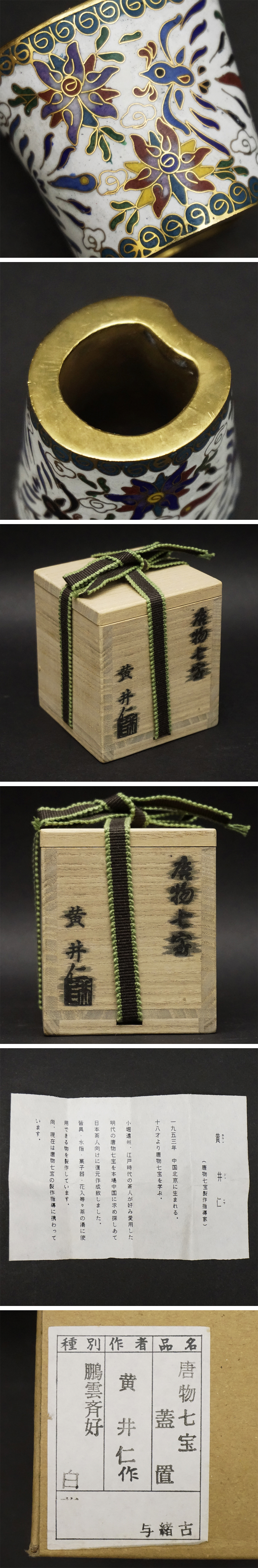 | 黄井仁造 唐物七宝 竹節形蓋置 共箱 七宝焼 茶道具 煎茶道具 時代 骨董 未使用品 古美術品 経年による小傷、汚れがあります。 大きな欠け、ニュウはありません。 箱は小傷、汚れなどあります。 時代、年代はわかりません。 状態は画像を参考にされて下さい。 よく画像をご確認いただき、下記、説明文章、注意事項、送料確認の上、充分ご理解、ご納得の上で、ご自身の判断で納得後に入札をお願いします。 古美術品に関しましては、見解の相違などございますので 時代、地域、来歴等の保証は致しかねます。 ご不明な点がありましたら、質問欄から、お問合せ下さい。 あくまでも長期保管品になりますので完璧をお求めの方、神経質な方はご入札をお控え下さい。 サイズ 幅約5×約5×高さ約4.3cm 【発送詳細】 広島県からの発送 ゆうパック 60サイズ |