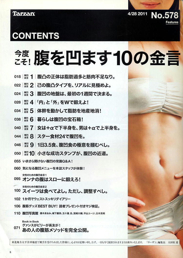 【ターザン】2011 NO.578 ★ 今度こそ腹を凹ます10の金言 ★ 優木まおみ 大沢たかお [浏览原始页面]