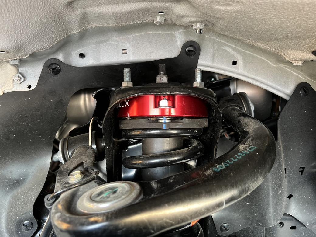 | 予備事項1 | スペーサー自体は約3cmですが、GUN125のアッパーアームの構造上200%以上リフトアップする仕組みのため、3cm=1.18インチのスペーサーを入れることで2.5インチ前後リフトアップします |