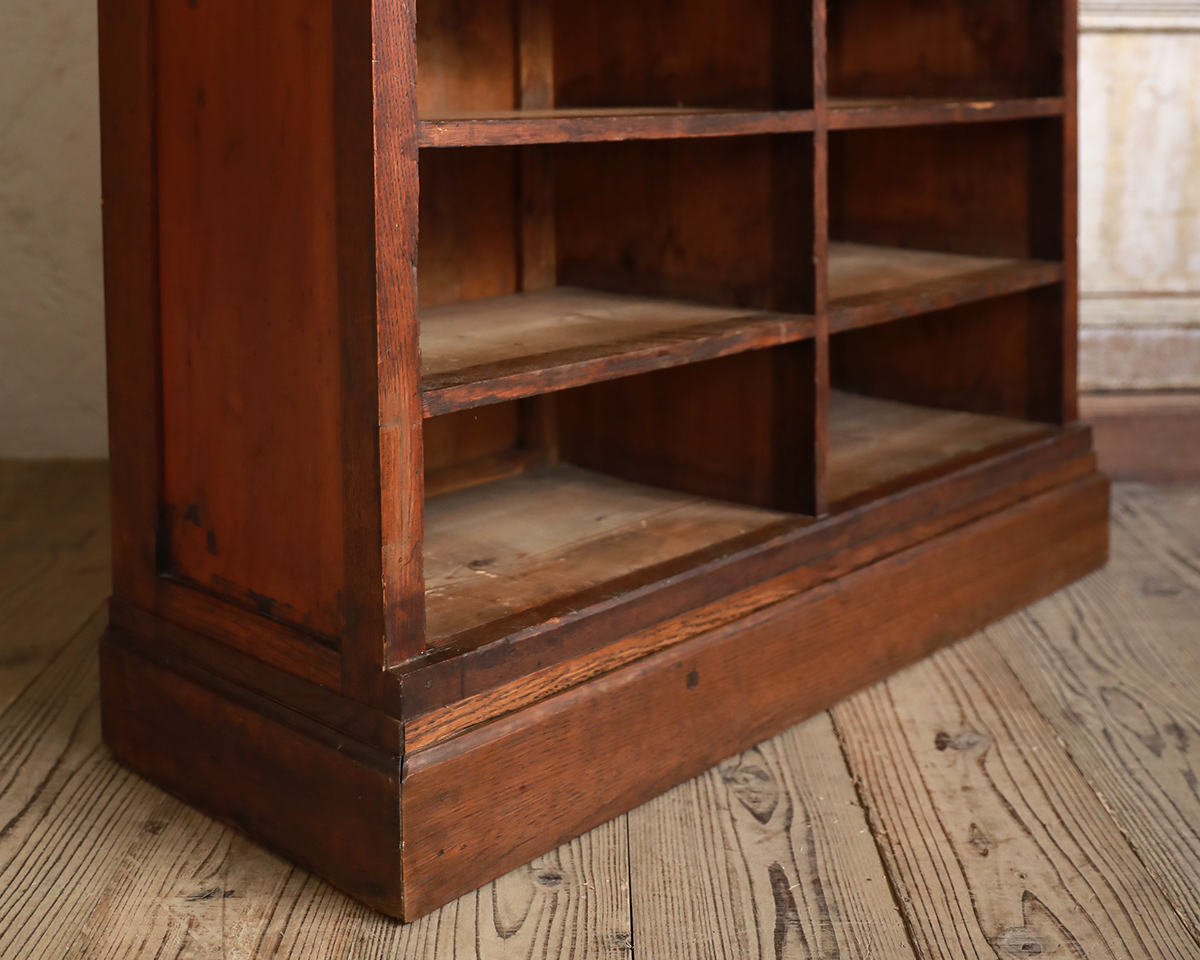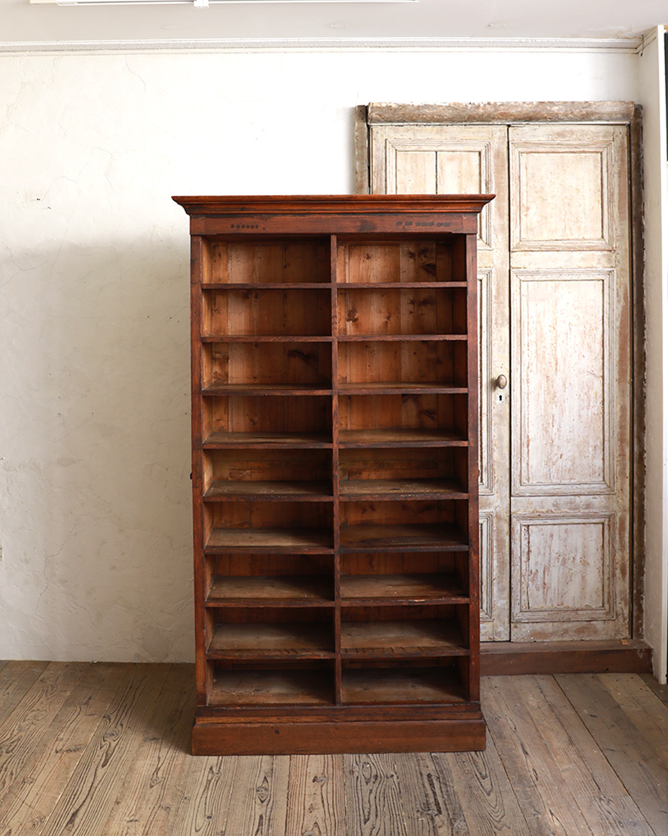 From : France フランスより届いた味わい深い風合いを纏ったシェルフ型のファイリングキャビネット。 重厚感を備えたオーク材ならではの厳かな雰囲気が感じられ、高貴な印象を宿すひと品。 升目状に仕切られた収納部や、直線的なラインで覆われた無駄のないシルエットは高尚な姿を覗かせ、様々な空間に溶け込むスタンダードで上品な佇まいです。 実用面でも収納力に長けた設計で書類やクリップボードの仕分け、シューズボックス、本や食器の収納棚、衣類収納ケースなどとして汎用性の高いアイテムです。 収納間口:幅45*奥行き33.5*高さ16.3-16.5(cm) 商品はアンティーク品のため、お写真では伝わり難い色褪せや小傷などがございます。 追加のお写真をご希望の方はお気軽にお問合せくださいませ。 商品はメンテナンスを施してからの発送となります。メンテナンス時にお写真にはない修復跡が残る可能性もございますので、予めご了承くださいませ。 またお届けまでに7日間ほどお時間をいただく場合がございます。お急ぎの方はお気軽にご相談くださいませ。