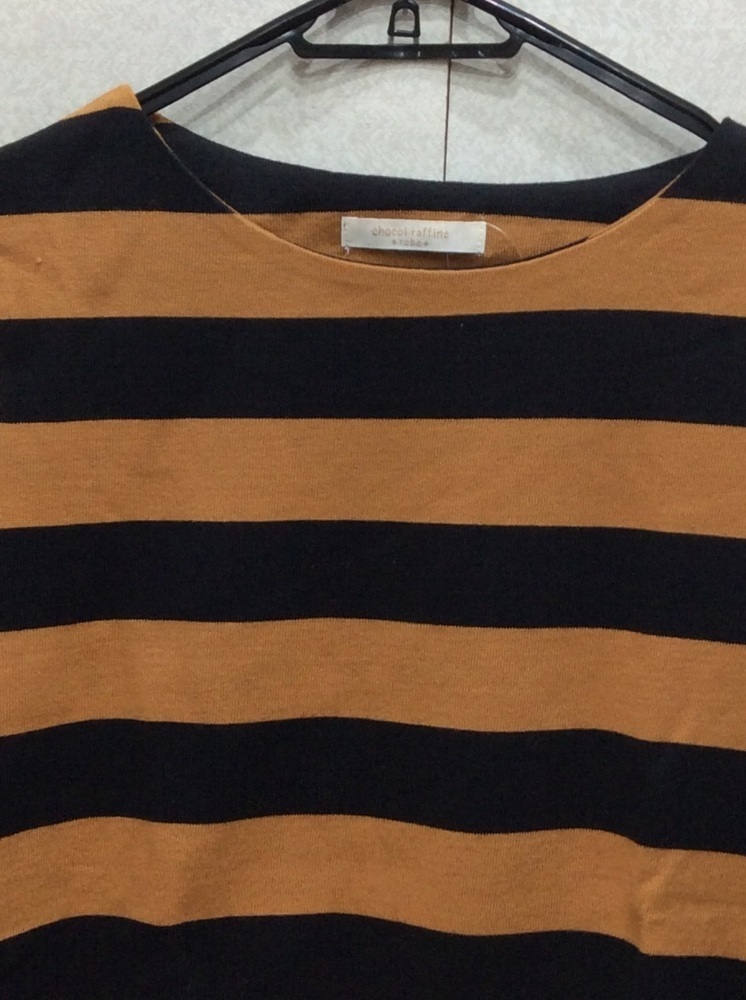 | 管理番号:40^123039 ショコラフィネローブ キャメル×黒ボーダーTシャツ 表示サイズ:F 実寸(参考)
