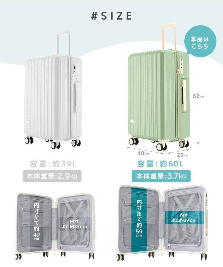 | 持ち運びしやすい軽量スーツケースです。 おしゃれなカラーバリエーションで気分を華やかに! 人気のパステルカラー6色展開! 高耐久、高品質のABS+PC素材を使用。 海外旅行でも安心して使える抜群の耐衝撃性で長くご使用いただけます! キャリーバーは使い勝手や身長に合わせて3段階の高さ調整が可能です。 コンパクトでありながら使いやすい内装! 荷物の飛び出しを防ぎ、小物類の仕分けに便利なポケット付きの間仕切りを両面に備えています。 施錠は操作が簡単なダイヤル暗号式! 鍵を持ち歩く必要がなく、紛失の心配もなし! 世界基準施錠TSAロック搭載! 全世界施錠した状態で荷物を預ける事が出来ます。 ■商品コード:PCBL24WH ■商品仕様 カラー:ホワイト サイズ(約): ・外寸 40×23×62cm ・内寸 59×39cm 重量(約):3.7kg 容量(約):60L 素材:アルミ合金 他 ■注意事項 ・TSAロック方式の商品には、鍵穴が付いていても鍵は付属しておりません。 (検査時に空港のTSA職員が専用の鍵で開錠するためのものです) ・商品は、モニターによって色合いが異なって見える場合があります。 ・仕様・デザインは改良のため予告なく変更することがあります。 ■保障期間 7日間 ※商品到着後7日以内の初期不良・破損のみご対応させていただきます。 【新品未使用品です】 |