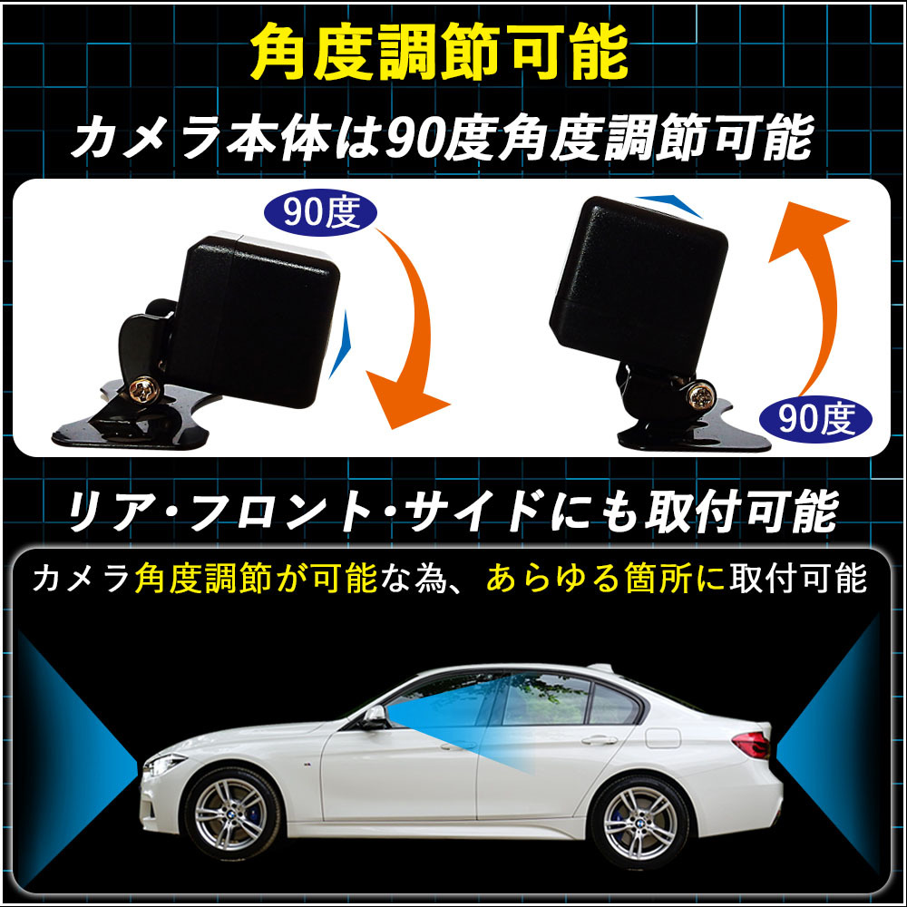 ~高精細画質!CCDバックカメラ~ こちらのカラーはブラックです。 ※弊社提携工場での直接大量製造のため、品質を落とさず、価格を極限まで落とすことに成功しました。 ■■■高精細CCDバックカメラ■■■ カラーCCD高画質、広角バックカメラ 今主流はCMDカメラですが、断然CCDの方が画質が良いです。 広角でカラーのため非常に視認性が高く、後方にある障害物も一目で確認できます。 切替機能つきでバックカメラだけではなく、フロントカメラとしてもご使用いただけます。 ガイドラインの[ON/OFF]の切り替えも可能となっています。 (フロントカメラとして使用する場合、別途コネクターが必要になる場合があります。ご注意ください) ナビメーカ等の2万円程の商品でもCMDカメラです。 高級メーカー純正ナビになりますとCCDカメラになっております。 ■■■バックカメラ変換アダプタ■■■ ナビ側のコネクタ入力部分をRCAに変換するコネクタがセットで付きます。 カプラーオン設計ですので、装着は簡単です。 適合メーカー:カロッツェリア 適合ナビ型式:AVIC-EVZ9 品番: ※型式が違うナビでも適合する場合がございます。 ■■■バックカメラ商品仕様 ■■■ センサー:超高精細CCDセンサー 画素数:720×576(480TVlines) 視野角:170° ガイドライン:[ON/OFF]切り替え可能 出力形式:RCA 定格電圧:DC12V 最小照度:0.5Lux ケーブル長 本体から電源、RCAまで:約0.5m 電源ライン:約1.2m 映像ライン:約5m カプラー適合については御購入前に必ず現車にて形状の確認をお願いします。 万が一形状が違う場合でも返品を受け付けることはできません。 (オプションなどの仕様により異なる場合があります) 既に映像入力端子などの外部入力がある車両やモニター画面にVIDEOやVTRの表示される車両には お取り付け不可の場合がございます。 適合車種・取付方法等のご質問にはお答えできかねます。 予め、ご了承ください。 | ||||||