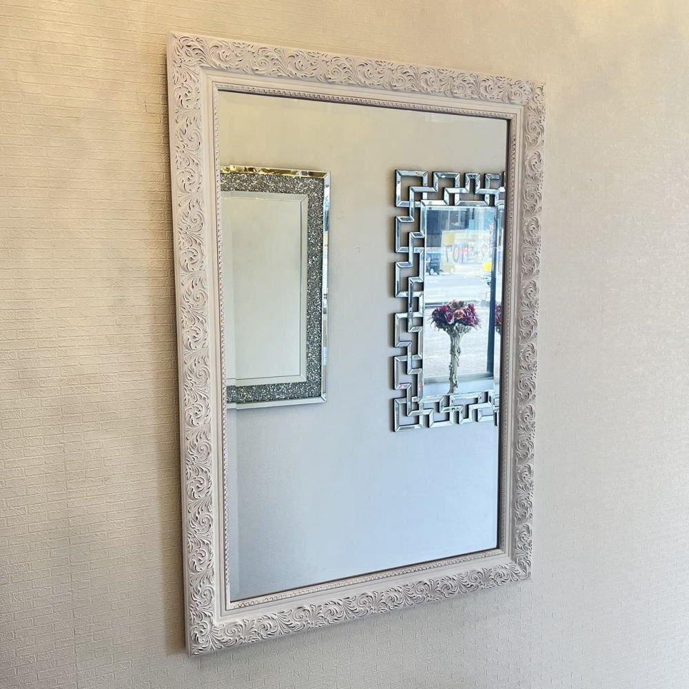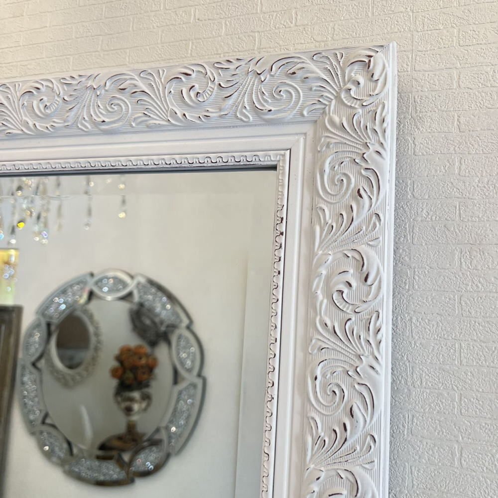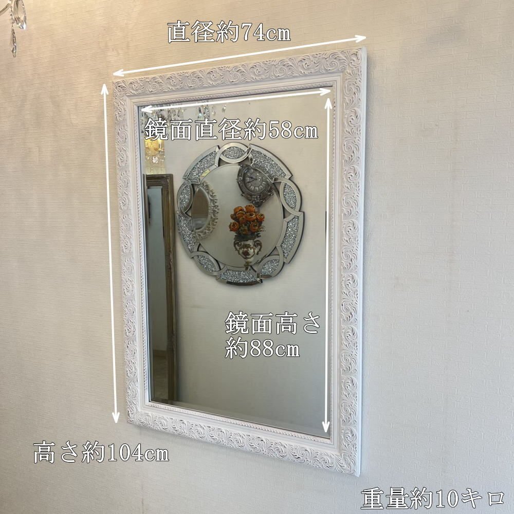 ![]() 【送料無料!】新品・大型アンティーク調 おしゃれなデザイン 掛け鏡 【送料無料!】新品・大型アンティーク調 おしゃれなデザイン 掛け鏡 ☆額のデザインは画像で見るより重量感&立体感がありおしゃれでとてもよい作品と思います ☆額の色目はホワイトベースでブラウンのペイントを彫刻部分に施したとてもシンプルなデザインです ☆ミラー部分は、面取加工で厚み5mmのカットガラスになっており歪み等無く上品に仕上がっております ☆背面に吊金具4箇所付属いたしますのでお好みで縦・横両方で吊り下げ可能です ☆綺麗でおしゃれなデザインの壁掛け鏡を是非この機会に! サイズ・・・縦約104cm(鏡部分88cm)横約74cm(鏡部分58cm)厚み約3cm・重量約10キロです ![]() | |