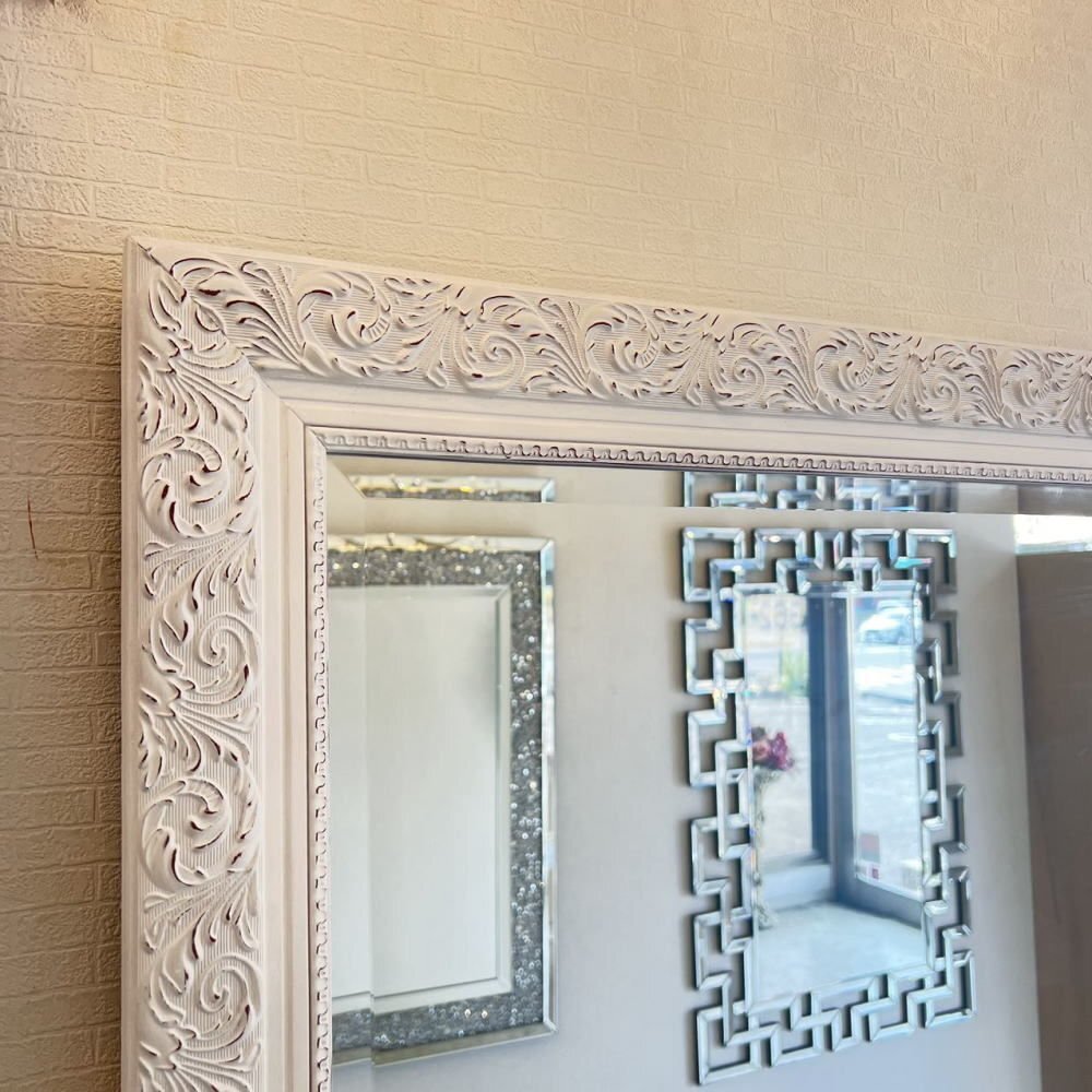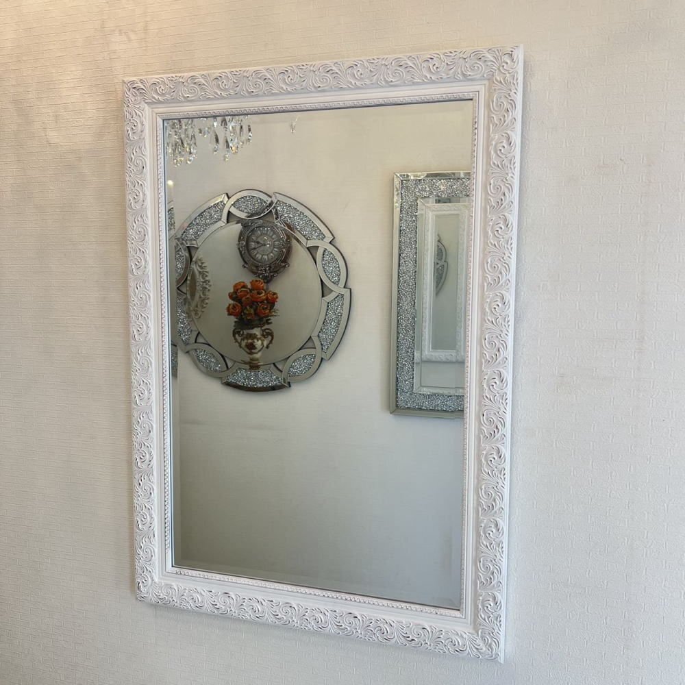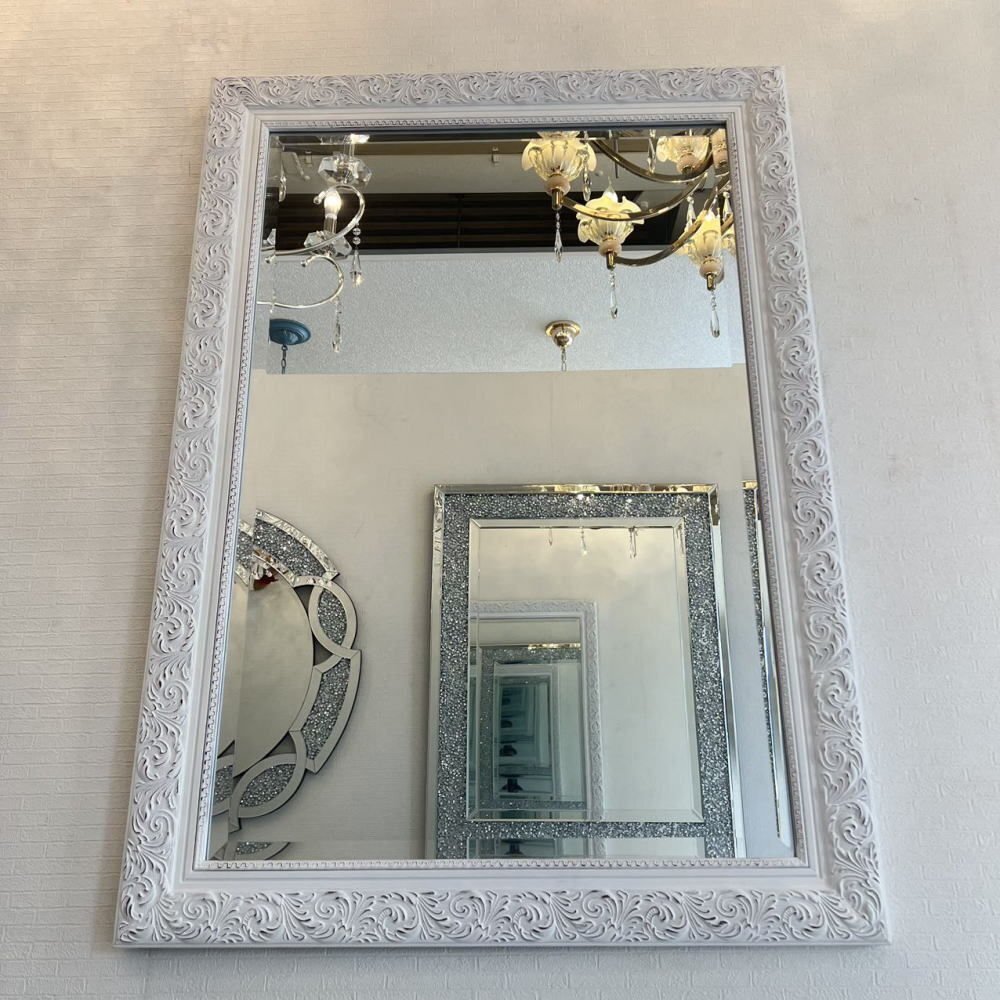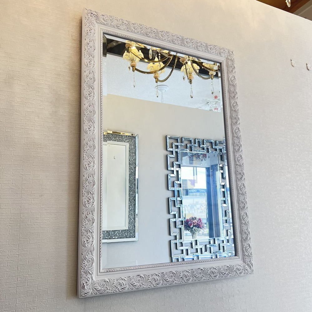 ![]() 【送料無料!】新品・大型アンティーク調 おしゃれなデザイン 掛け鏡 【送料無料!】新品・大型アンティーク調 おしゃれなデザイン 掛け鏡 ☆額のデザインは画像で見るより重量感&立体感がありおしゃれでとてもよい作品と思います ☆額の色目はホワイトベースでブラウンのペイントを彫刻部分に施したとてもシンプルなデザインです ☆ミラー部分は、面取加工で厚み5mmのカットガラスになっており歪み等無く上品に仕上がっております ☆背面に吊金具4箇所付属いたしますのでお好みで縦・横両方で吊り下げ可能です ☆綺麗でおしゃれなデザインの壁掛け鏡を是非この機会に! サイズ・・・縦約104cm(鏡部分88cm)横約74cm(鏡部分58cm)厚み約3cm・重量約10キロです ![]() | |