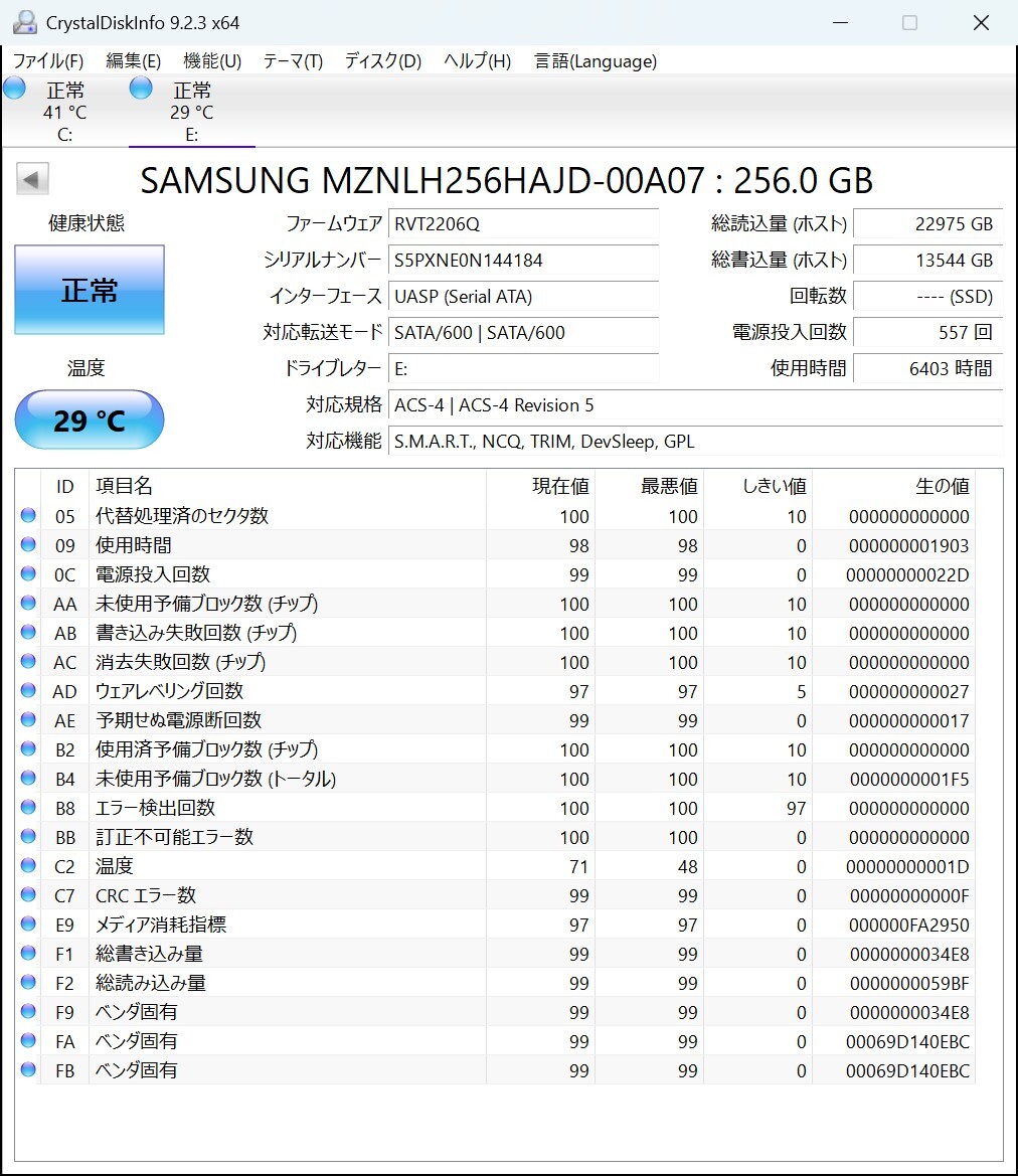 | ★☆1円 ~スタート☆Samsung SSD PM881 M.2 2280 MZ-NLH2560 256GB 使用時間:6403H☆★ | |