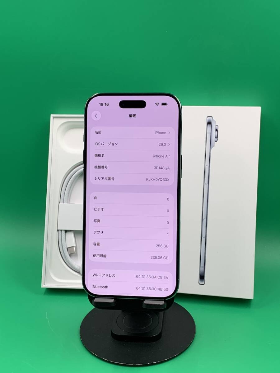 【商品名】iPhone 17 Air 【容量】256GB 【カラー】スカイブルー 【型番】3P148J/A 【バッテリー最大容量】100% 【アクティベーションロック】解除済み 【シリアル / IMEI】356770690006026 【SIMロック】解除済み 【キャリア】KDDI 【利用制限】○ 【初期不良】商品到着後1週間 【付属品内容】 ★本体 ☆写真に写ってる全て(スタンド除外) ※その他注意事項: ♪液晶面:純正品、検品のみで、未使用な状態です。 ♪本体状態:本体検品のみで、未使用です。 通信含め、動作確認済みで、全て問題なく、使用できます。 ※こちらの商品は店頭展示品です。量販型モデルと変わりがありませんので、ご安心ください。 【発送日程】当日または翌日(当日12時過ぎた場合は翌日になります。) 【発送方法】2、ヤマト運輸コンパクト 【定休日】日曜日(土曜日12時以降、日曜日お支払いの場合は月曜日に発送致します。) 【管理番号】AJ120251028−QK0354 【免責事項】 1、写真はなるべく分かりやすいよう、傷、汚れなどを隠さず、正確な情報をお伝えしますが、 一部どうしても映れない傷、汚れがあるかもしれませんので、ご注意ください。 2、あくまで中古品ですので、多少の汚れ、細かい傷がございますので、神経質な方はご慎重にお考えください。 3、また、バッテリーは消耗品のため、保証の対象外となります。 4、バックライト等の消耗品、液晶色ムラ・ドット抜けは可能な限り記入するようにしますが、あくまでも消耗品なので、当方が検品できない場合もございますので、その場合は保証対象外になります。 | ||