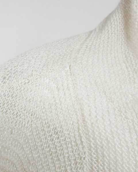 | ナチュラルな質感が素敵な春夏ニットボレロ。シャリ感のある麻混の糸をざっくりと編んだ、涼やかな1枚です。生成り調のカラーでコーデしやすく、ノースリワンピースやキャミにサラっと羽織れば、程よいぬけ感を演出するゆったりとしたお作りになっています。 |