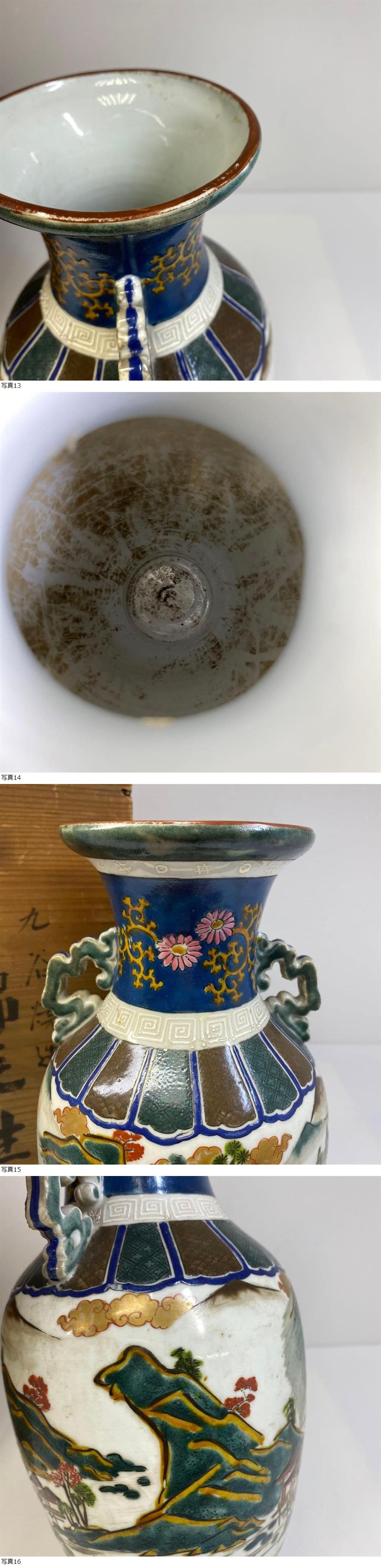 時代 青九谷 花瓶 木箱付 高さ31㎝