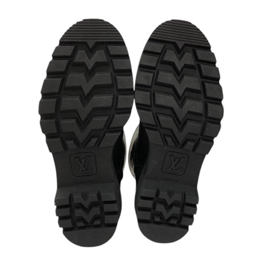 | ルイヴィトンのブーツ「テリトリーライン フラット ハーフブーツ」です。サイドのバックル、ロゴプレートがアクセントのお洒落なラバー加工のレザーブーツです。ハーフサイズで幅広いコーディネートが可能です。 | ||