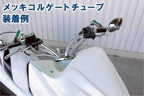 | 商品内容 | スリット入りのコルゲートチューブになりますのでブレーキホース・ワイヤー類・ハーネス等に被せるだけで簡単に集束や保護ができます。 メッキ仕様なので見た目もオシャレ!!カスタムにもオススメです!! フレキシブルなので用途しだいで色々な場所に取り付けることが出来ます。 ※注意事項 商品を極端に折り曲げたり捻ったりするとメッキが剥がれる恐れがあります。 取り付けの際に、コルゲートチューブのスリット部に配線等挟んでしまうと断線などの原因になってしまうので注意してください。 |