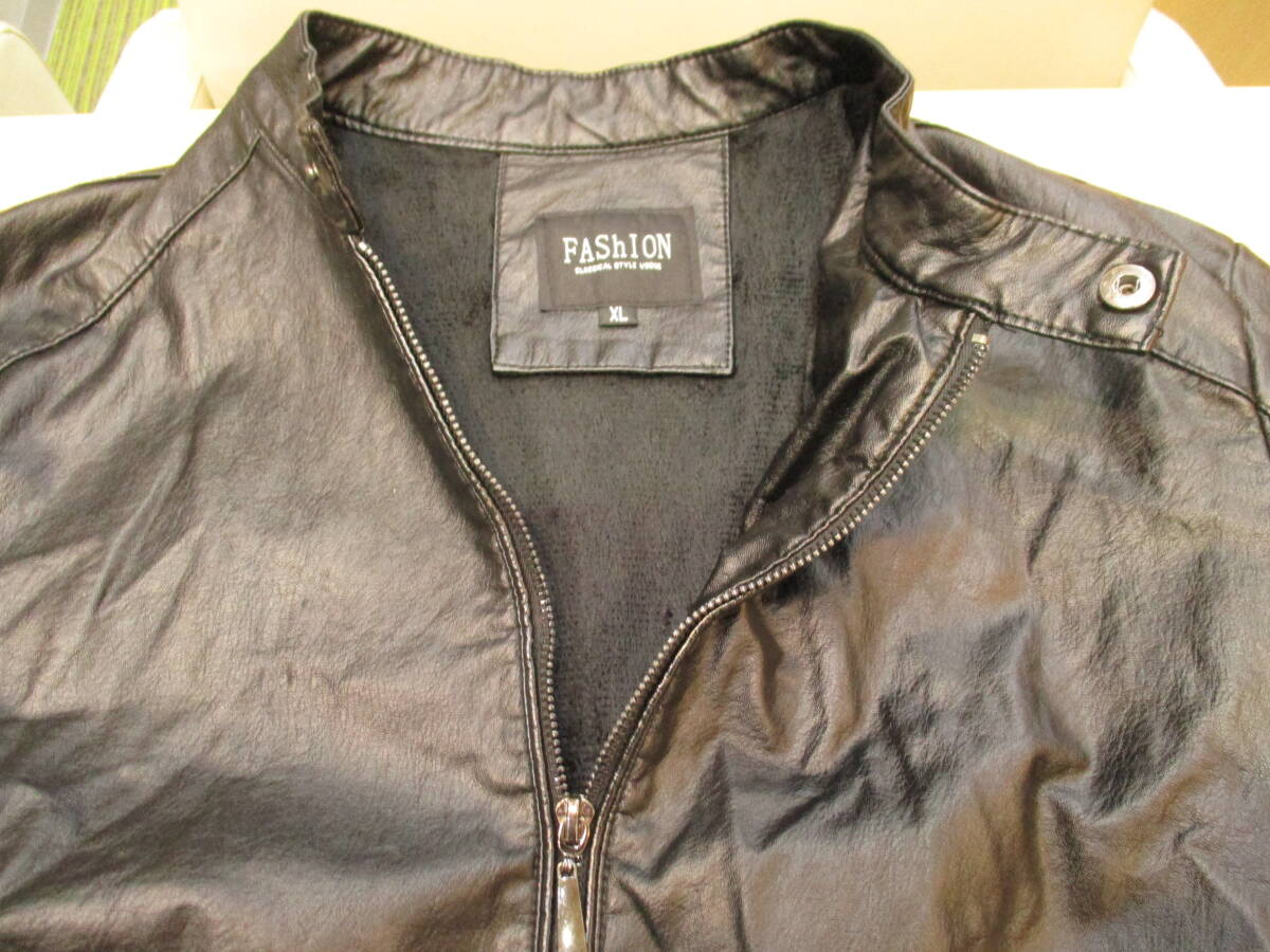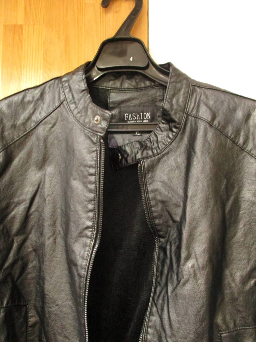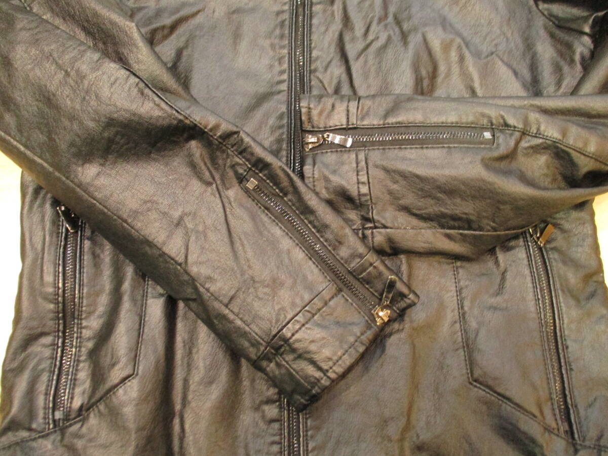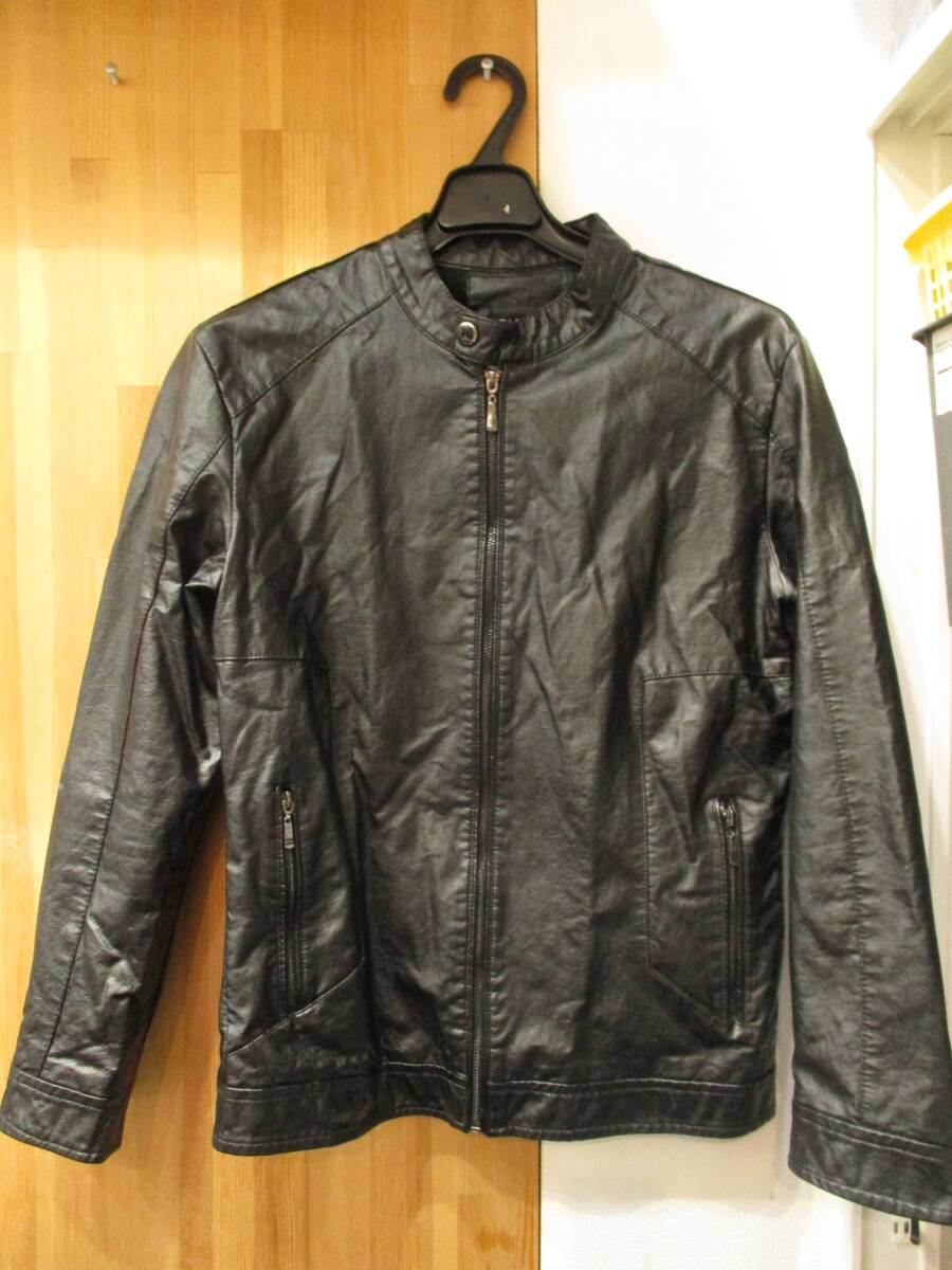 | シングルライダースジャケット FAShION フェイクレザー 内ボア 防寒 ブラック USED品 箱無し |