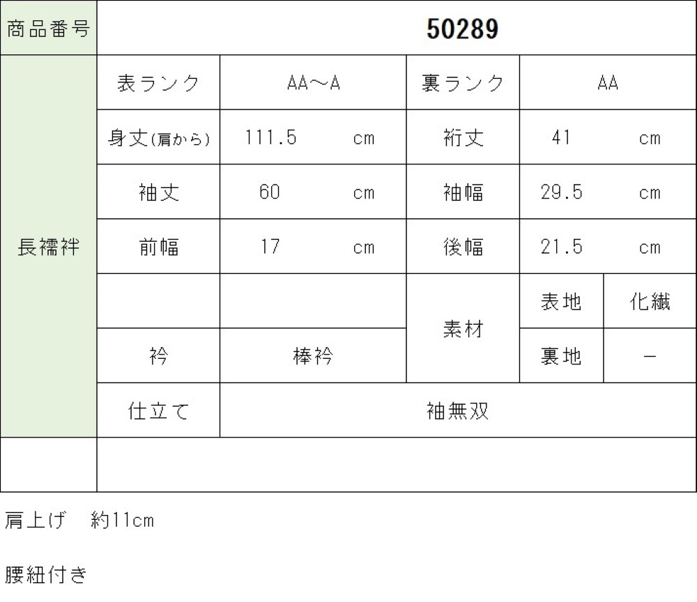 【商品説明】赤色に四季花文様が施されたお洒落な子供用長襦袢です。 【シミ汚れ等の状態】 所々色落ちや糸が弱っているところがあります。 ★サイズについて サイズに関しましては一品ずつ手で測っており、お着物や帯の性質上生地の伸縮性もございますので、 若干の誤差がある場合が多々ございます。 2cm未満の場合は、誤差となりますので大変申し訳ございませんが返品は承っておりません。予め御了承下さい。 |