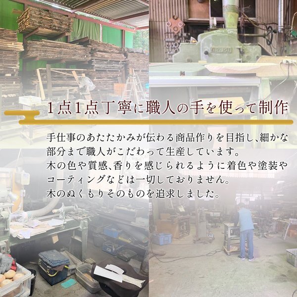 | ※天然素材を使用し一点ものの手作りのため、実物と画像とで色味・木目・模様が多少異なりますのでご了承ください。 ・掲載画像はイメージであり、実際の製品とは多少異なる場合があります。 ・製品の仕様は品質の向上・改善のため、予告なく変更となる場合があります。 |