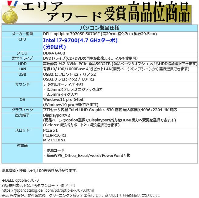 | 送 料 | ◆本州・四国・九州内各都府県は送料無料! 北海道/沖縄は送料1100円 ※ パーツ等小型商品は出荷から到着まで1~2日程度かかります。 ・PC・モニタ等の配送は、日本郵便 ゆうパック便でお届けいたします。 ・パーツ等はポスト投函便にてお送りします。 ■来訪での引取も可能です。 |