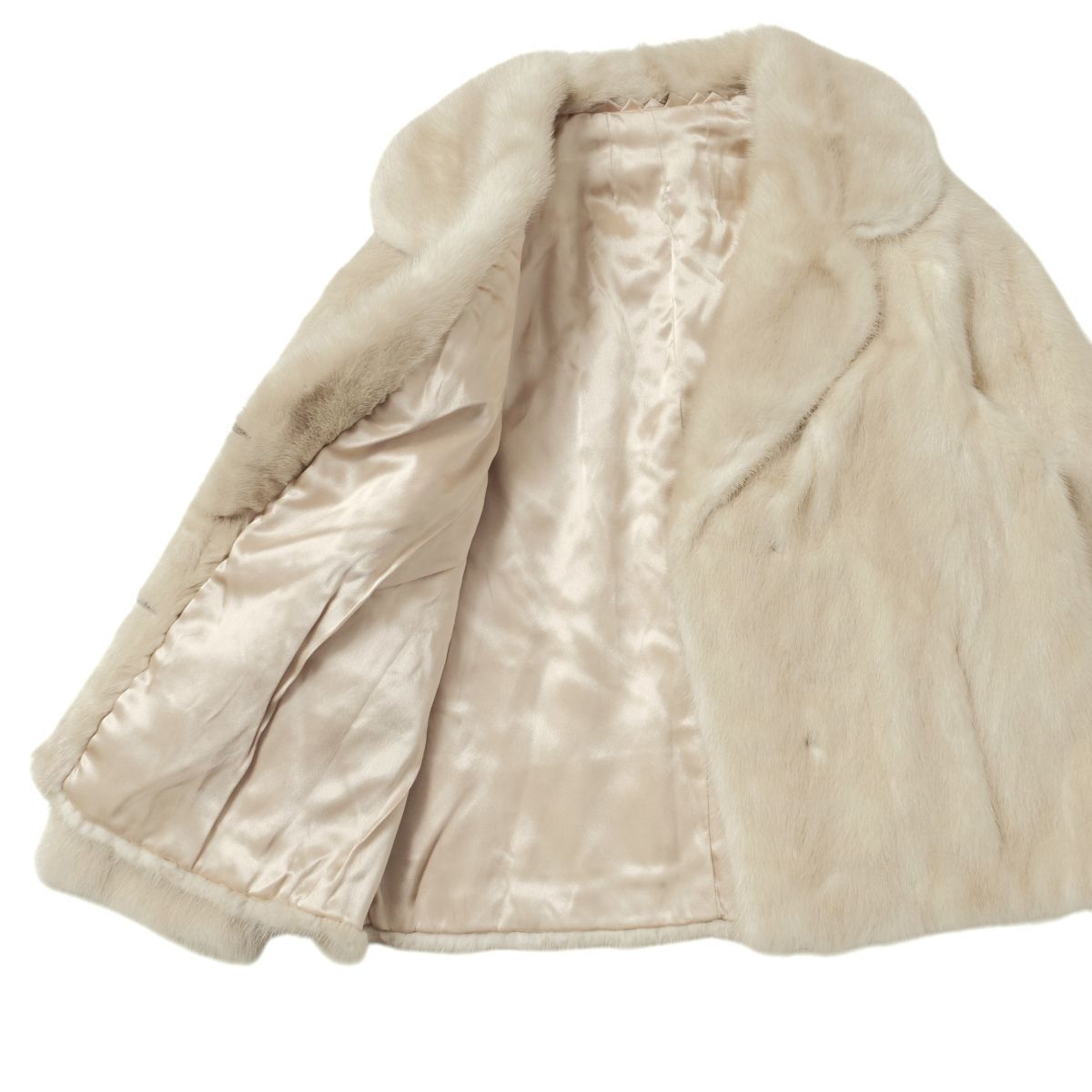 | GS4329◇EMBA エンバ ナチュラルベージュパールミンク ファージャケット 逆毛衿 ラグランスリーブ ファーコート ショート丈 M相当 毛皮 | |||