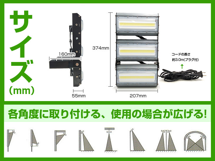 進化版 150W LED投光器 漸く登場! 150Wと省電力で、従来の2000W相当の明るさです! IP67規格の防水仕様!照射角度は240度に達します!公園、運動、屋外や現場作業にも便利です!特に、夕暮れ時夜間作業にとても役立ちます! 虫が集まりにくいの も魅力です。 ◆高品質のCOBチップ採用: 照射角度は240度に達します。高輝度寿命が50000時間に達します。省エネな製品だ! ◆優れた放熱性: 優れた6063型アルミ材質を採用、熱伝道スピードは伝統投光器の2倍以上!ヒートシンクには溝があり、空気とタッチする面積が増大します。 ◆防爆耐震ガラス: 耐圧強度が高いの防爆ガラスを採用。安定丈夫な材質で、長時間に使えます。 ◆IP67ラベルの防水性能: 密封性に優れ、IP67相当の防塵防水性能を実現!場所を選ばず様々な用途の照明に使えます。 ◆照射角度調整可能: 回転支えを使えて、お好みに照射角度を調整できます。 ◆広い使用範囲: トンネル、掲示板、ガソリンスタンド、夜間作業、現場工事、駐車場、公園、運動場にも様々な場所で活躍します!公園、運動、屋外や現場作業にも便利です!特に、夕暮れ時夜間作業にとても役立ちます! 虫が集まりにくいの も魅力です。 【保証】 ◆当商品は12っヶ月保証となります。 ◆お届けから1週間以内にご連絡のあった不良品の保証対応の送料は当方が負担いたします。 ◆保証期間内の不良品ですが、交換のみ対応しております。往復送料はお客様負担となります。在庫がない時だけ返金しますので、ご了承ください。 |