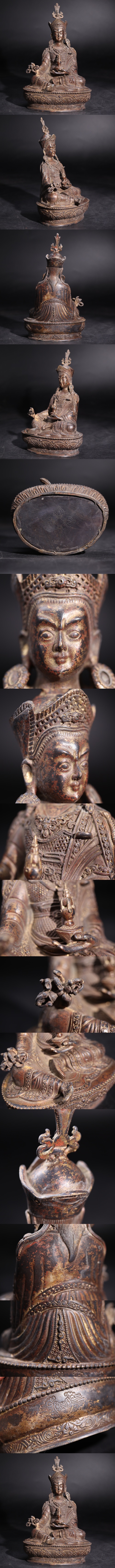 | 時代 銅製 蓮花生大師像 / 仏教美術 仏像 金工 彫金 古銅 置物 検索: 中国美術 チベット インド 密教 .G2980 |
