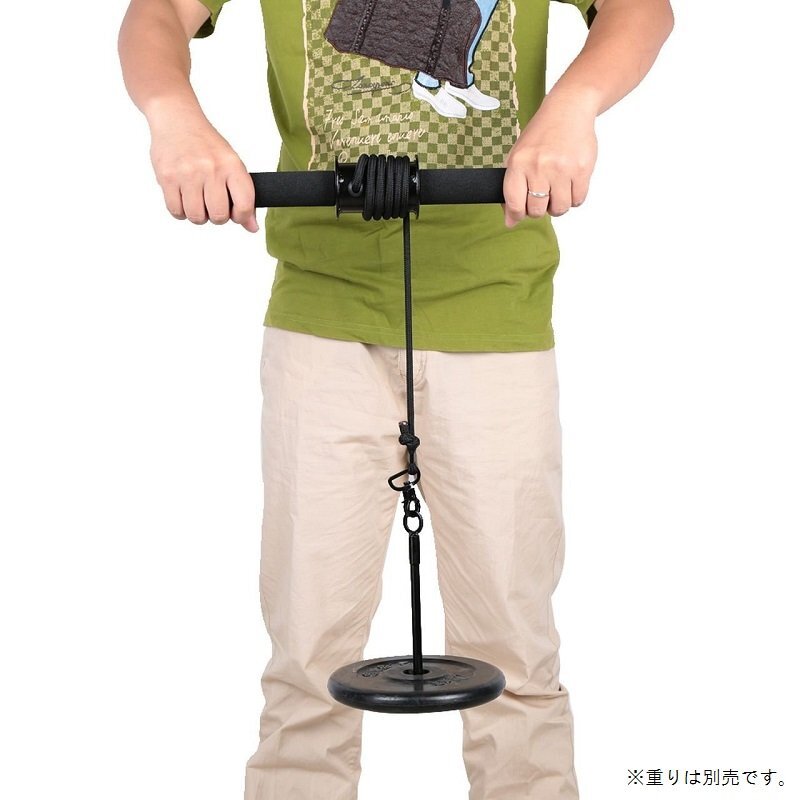 | トレーニングリストローラー 重りの巻き上げ下ろしを繰り返してトレーニング 短時間のトレーニングでもOK 重り(プレート)の重さを変えることで 野球、テニス、ゴルフ、柔道等のスポーツや トレーニング方法(例) 1 リストローラーを両手で持ち、腕を伸ばす ・手首と前腕の動きだけでプレートを巻き上げて戻すことで、 ・効果をしっかりと出すために、体が大きく動かないように、 ※輸入品のため基本的に日本語説明書は付属しません。 |