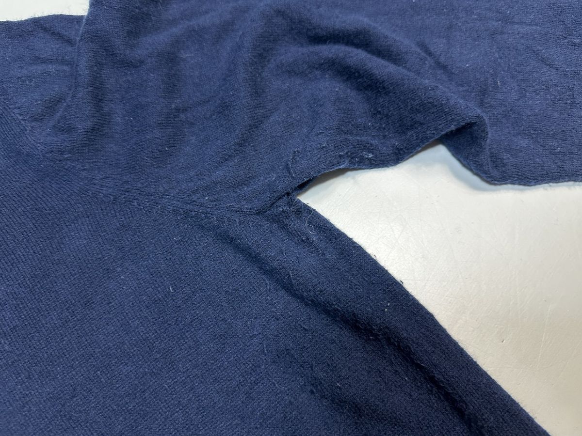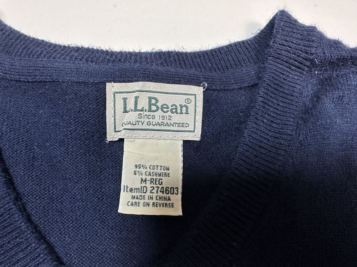 ●US USED L.L.Bean エルエルビーン 90s 90年代 ニット セーター コットン カシミア Vネック ハイゲージ ネイビー紺【M】