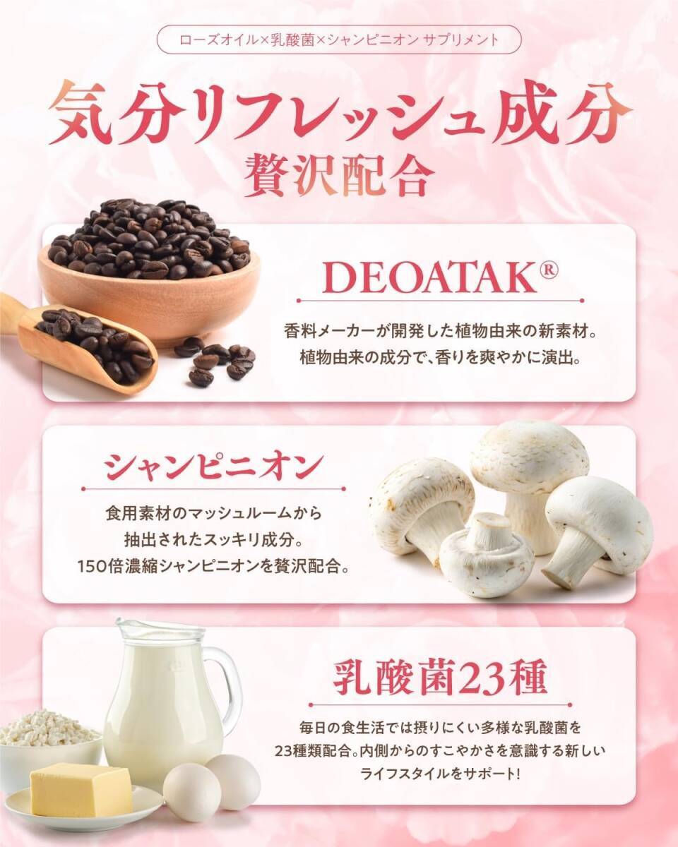 【内から、バラ香るエチケットケア】美をまとう飲む香水、という名の新エチケット習慣。天然ローズオイルをはじめ、シャンピニオン、白ナタマメ、乳酸菌など、香り・すっきり・美しさをトータルで支える成分を厳選濃縮配合。ふとした瞬間、あなたらしい印象がふわりと広がります。| 出价者 | 信用 | 价格 | 时间 |