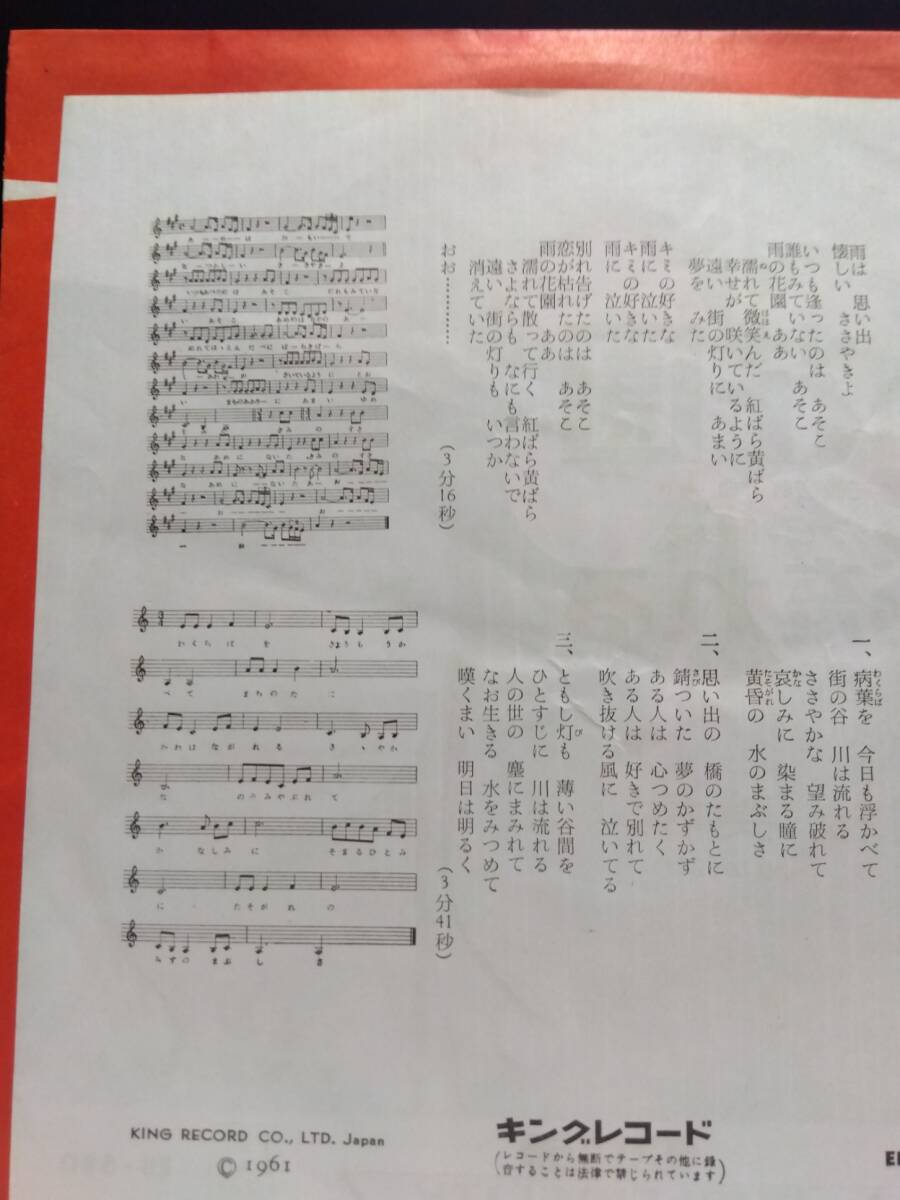 1961年 日本を席巻した「川は流れる」はB面でした。朝日放送ラジオの「ホームソング」に選定され関西から火がつき大ヒットとなったB面は全体的に擦れ傷あります(画像7.8)チリノイズは全体的にありますし所々にパチノイズあります。A面も擦れ傷多くあります(画像9,10)チリノイズも全体的にあります。| 出价者 | 信用 | 价格 | 时间 |