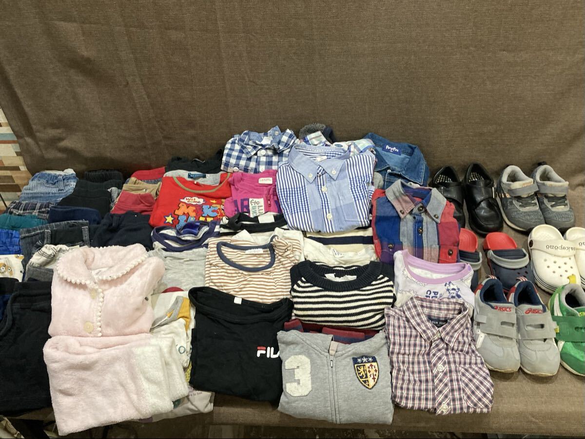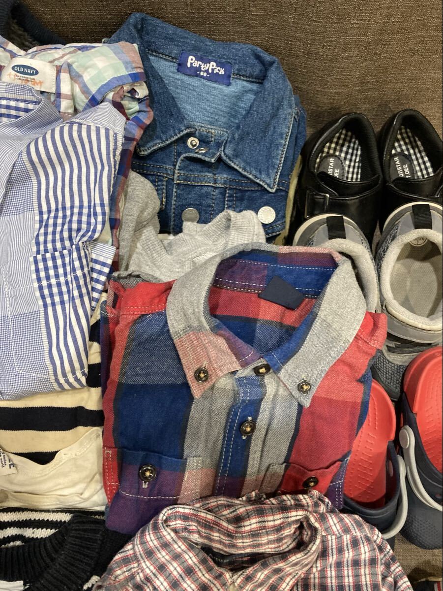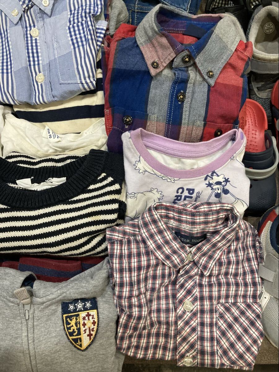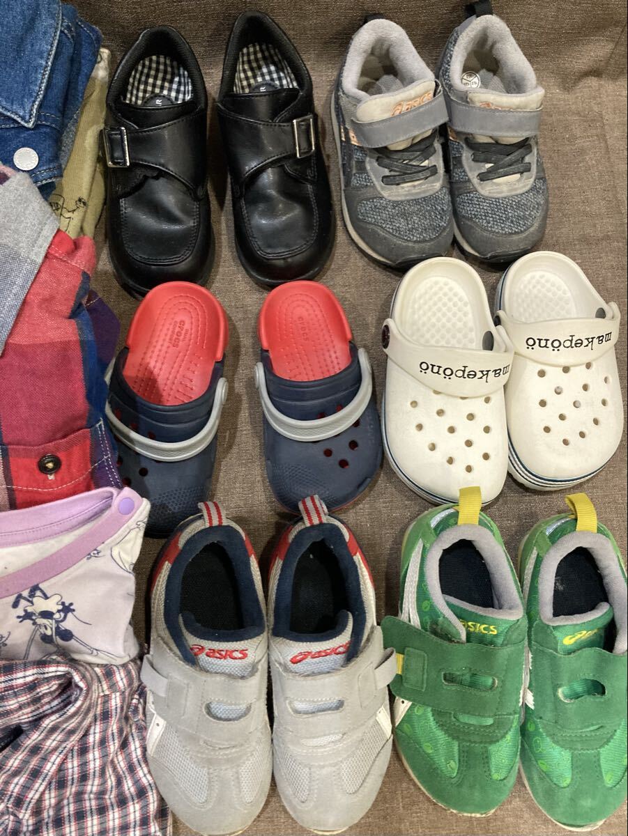 41【キッズ用品大量セット】靴 サンダル(16〜16.5cm位) Tシャツ ズボン シャツ デニム セーター パジャマ 等(80〜100位) 男女混在 あ